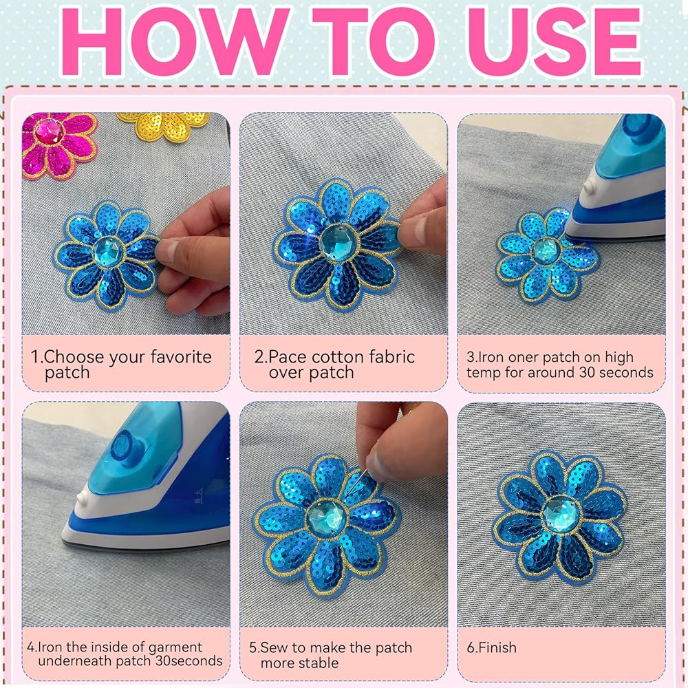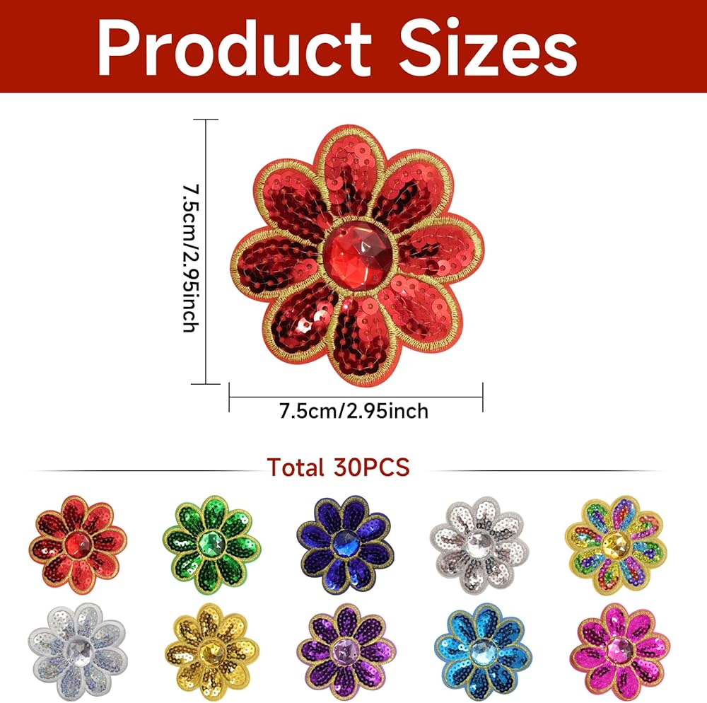 ZZXLLRO 30Pcs 8 Petals Flower Sequined Appliques