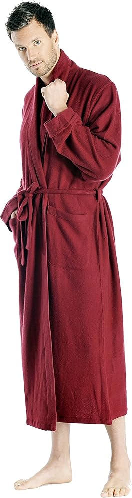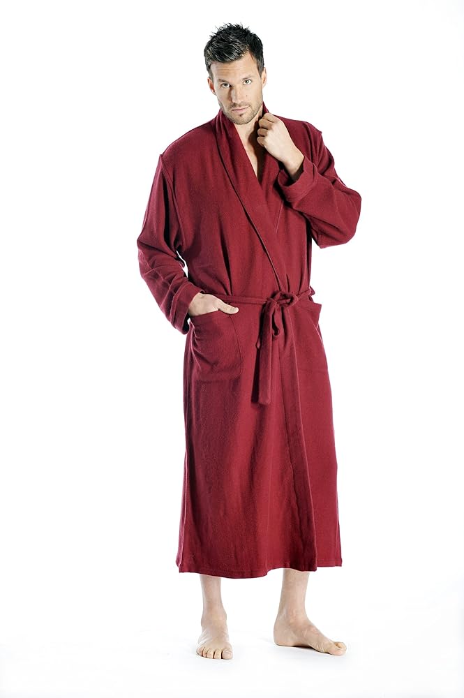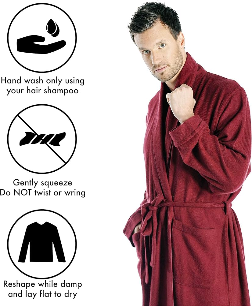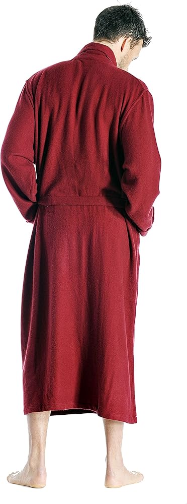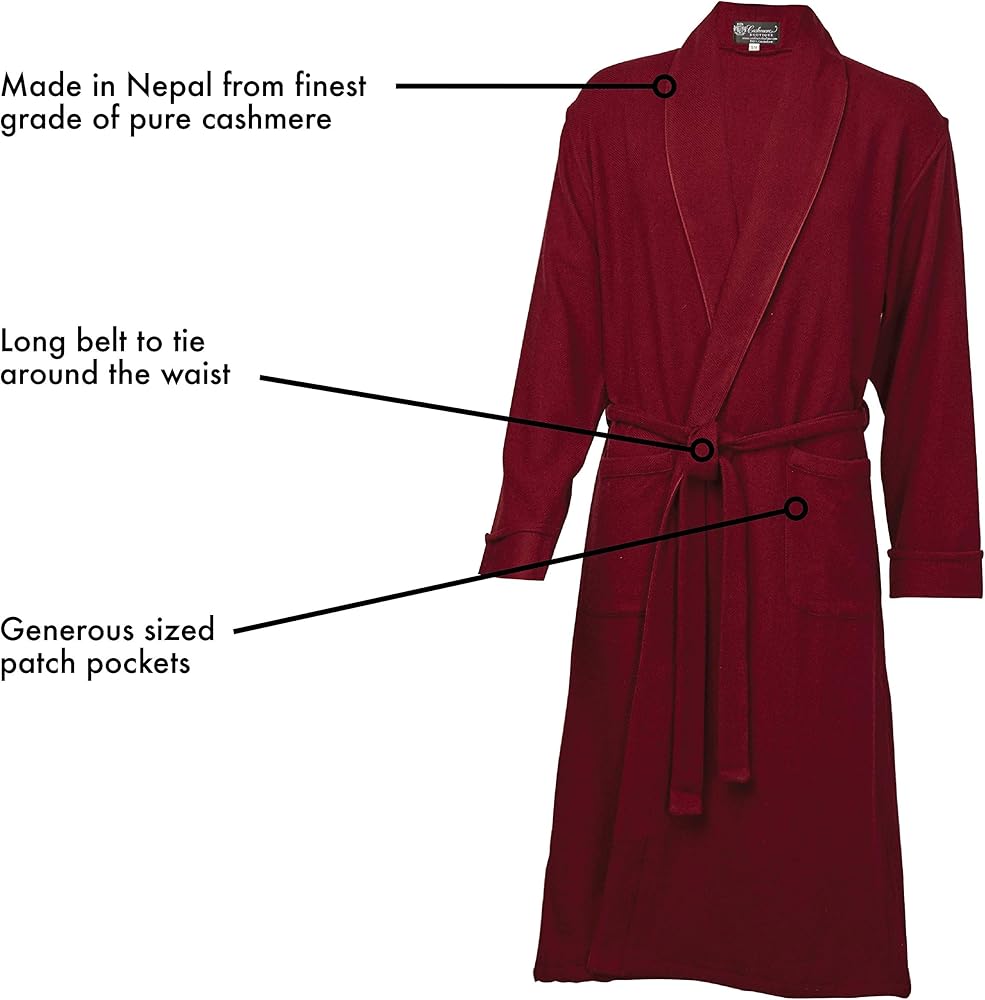 هذه الأرواب الكشميرية للرجال منسوجة وليست محبوكة مما يعطي سقوطاً أثقل وأكثر جمالاً. يتميز برباط ذاتي، وياقة شال، وجيوب جانبية مفتوحة، وطول كامل.