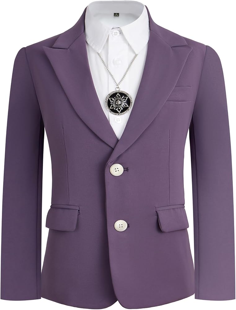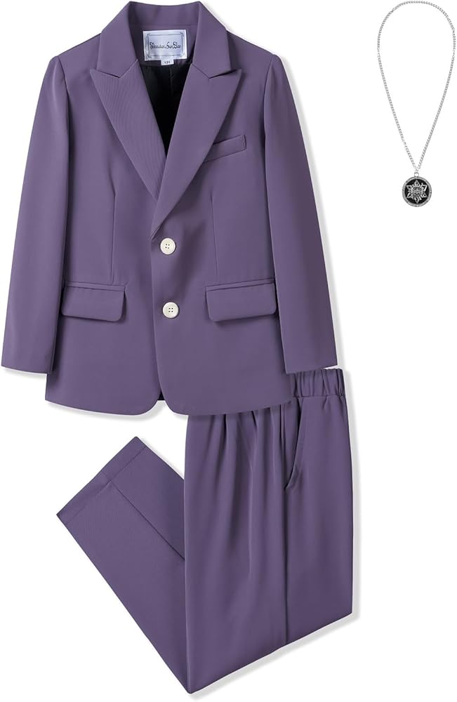 Boy's 2 piece suit comes complete with: one Button single breast fully lined jacket,elastic extendable waist trousers, and a necklace to complement the suit