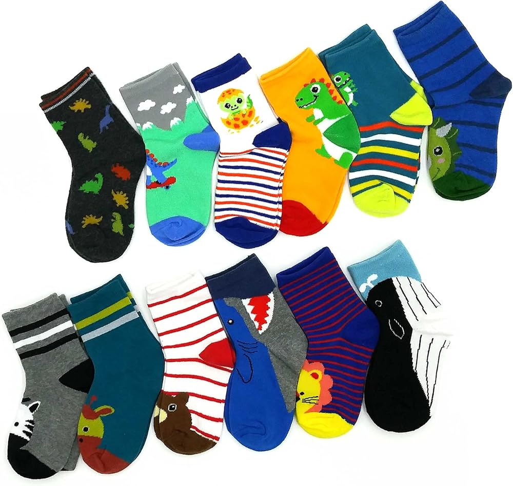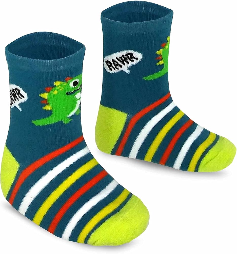 جوارب تي هي للأولاد الصغار والأطفال الصغار مصنوعة من القطن مكونة من 12 زوجًا في صندوق هدايا (6-8 سنوات، ديناصور)