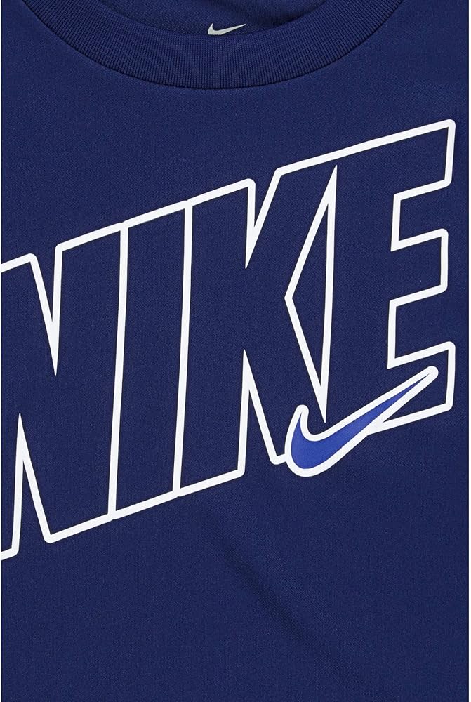 The classic Nike Kids Dri-FIT Graphic T-Shirt and Shorts Two-Piece Set is the perfect weekday outfit! Ultralightweight knit is crafted in a solid color with brand marking hits throughout for an iconic look. Regular-fit set includes a classic T-Shirt and shorts. Sold as a two-piece set. Crew neck shirt features short sleeves, tagless design, and a straight hem. Performance shorts crafted with a stretch waistband and a straight hem. 100% polyester. Machine wash cold, tumble dry low.