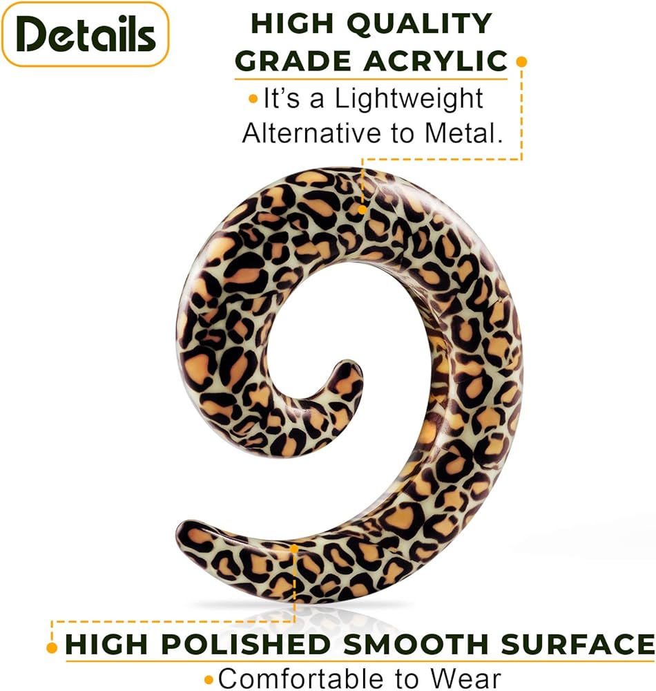YOU RECEIVE A pair of 1/2 inch Gauge 12mm Acrylic 1/2 inch tapers for ears (Spiral Coil Snake Skin Pattern).