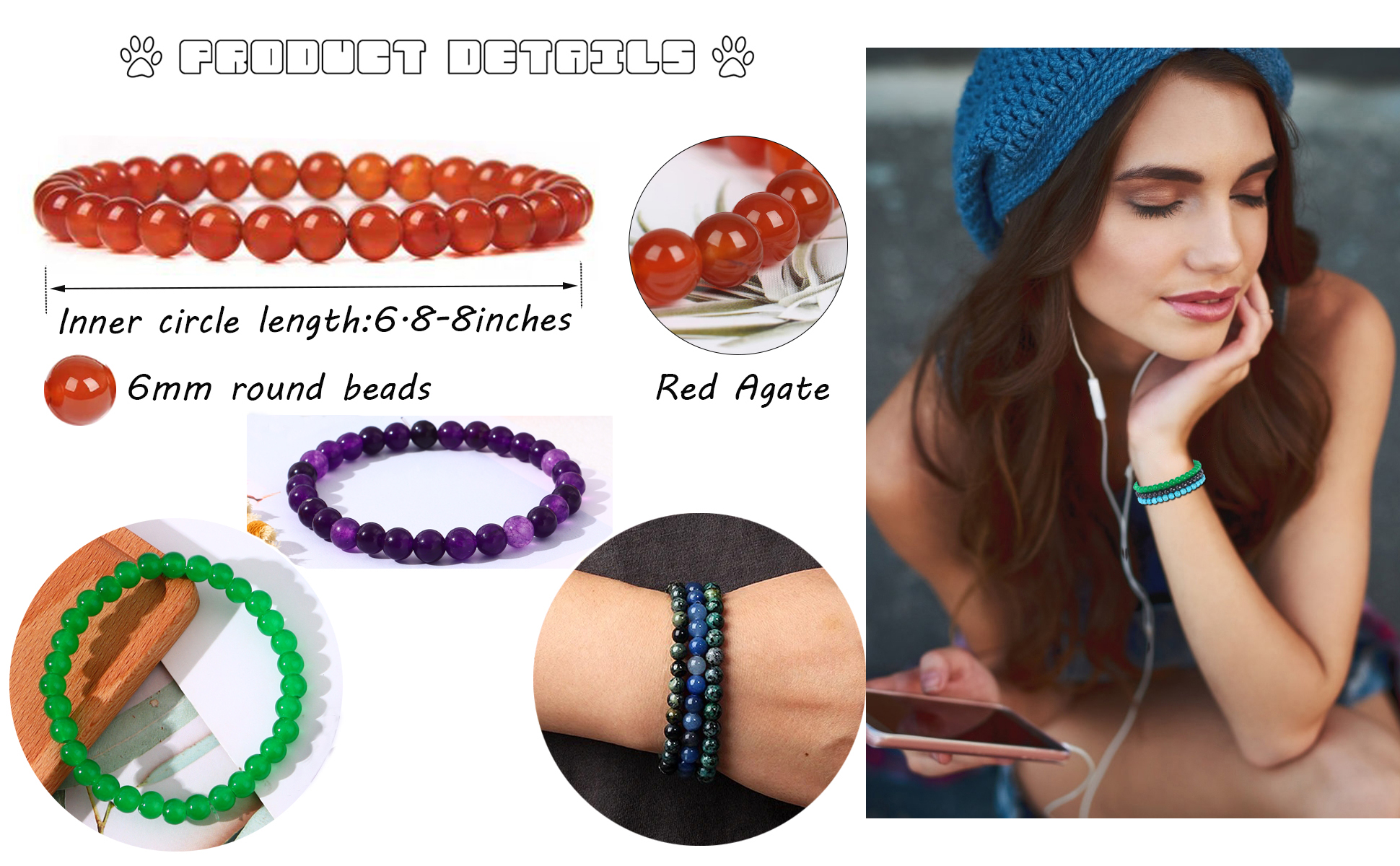 • خامة عالية الجودة: الأساور المطرزة مصنوعة من خرز حجري عالي الجودة تم اختياره يدويًا، متينة ورائعة، لا تسبب الحساسية للجلد. هذه الحجارة جميلة جدًا وخالية من العيوب، ولامعة ومصقولة بشكل جيد.