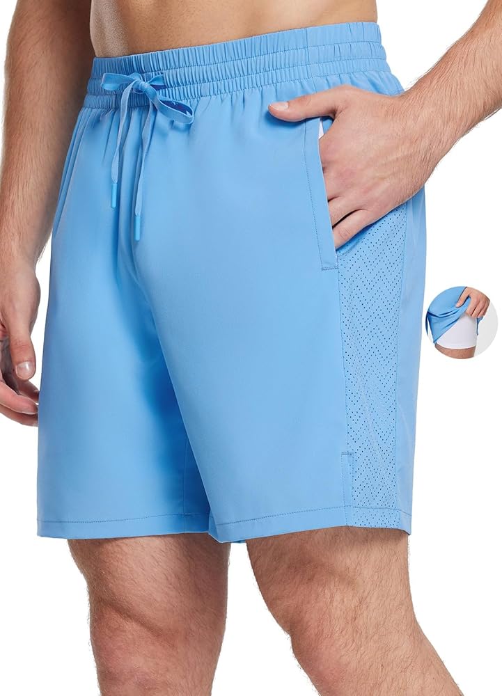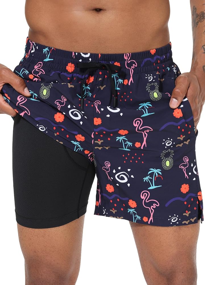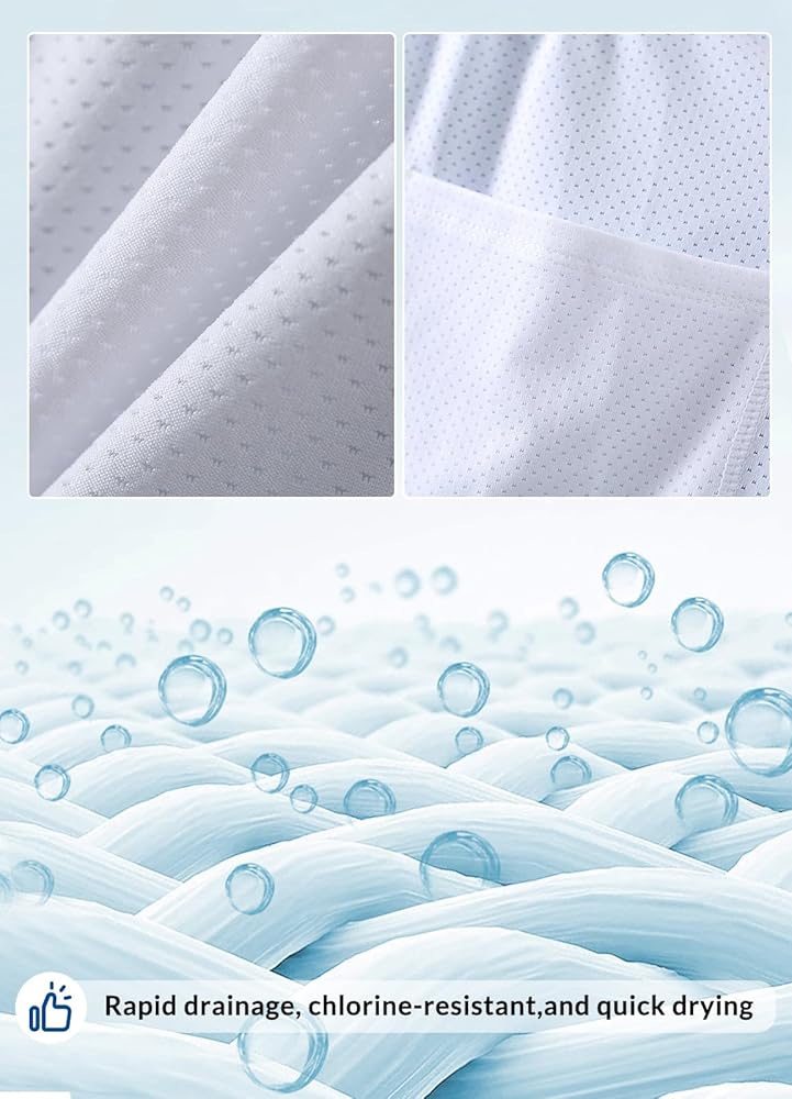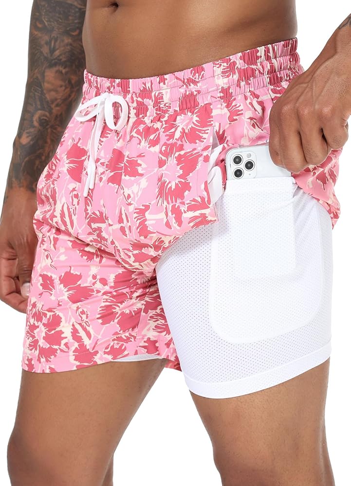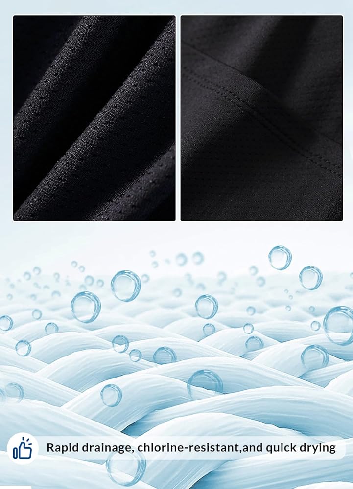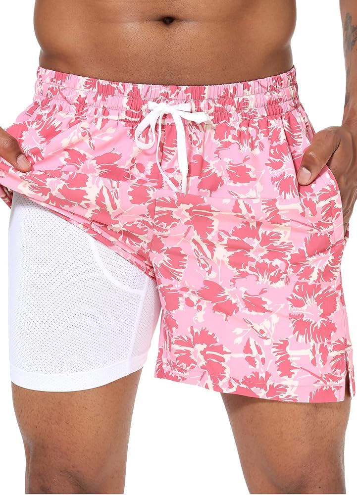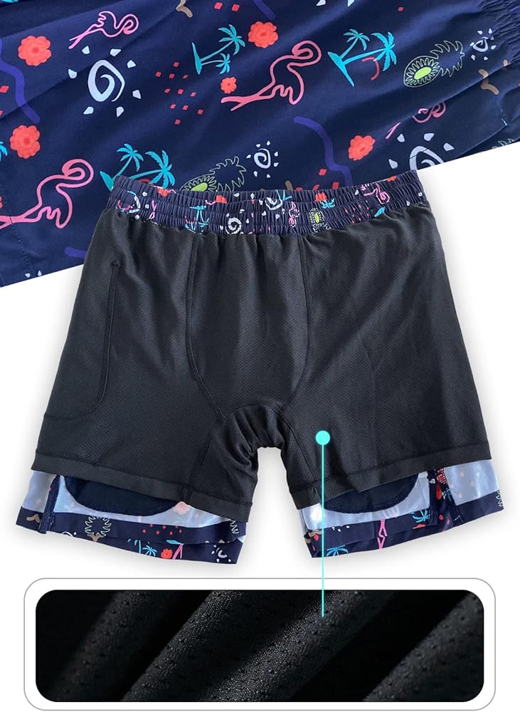 سروال سباحة 2 في 1: نسيج بطانة الملاكم الداخلي عبارة عن تغطية شبكية مسامية بالكامل، والتي تتميز بتصريف أفضل، وتمنع الرمل من الالتصاق بالجلد، ومضادة للاحتكاك.