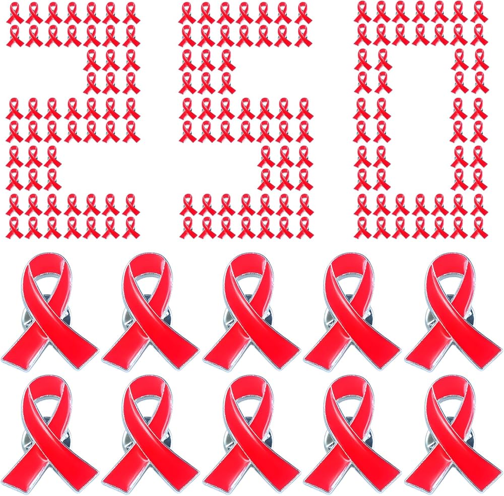 250 قطعة من دبابيس الشريط الأحمر للتوعية بأمراض القلب لليوم العالمي للإيدز وأمراض القلب، مستلزمات الأسبوع والتوعية بتعاطي والوقاية من تعاطي