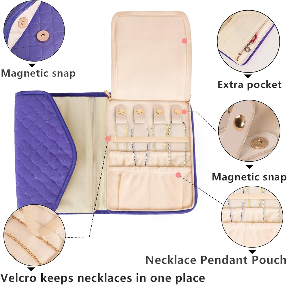 EXCELLENT PROTECTION: Quilted and velvet inner material offer great protection for jewelries. Unique Snaps Closure design easily access to close and open.