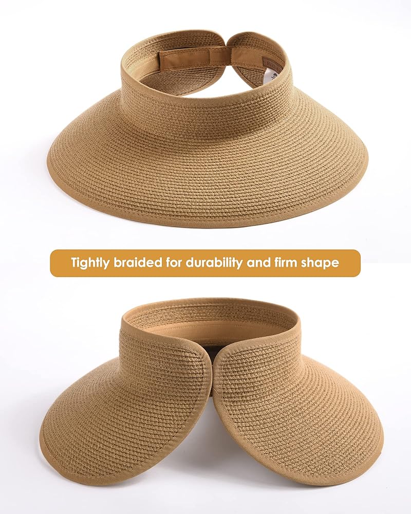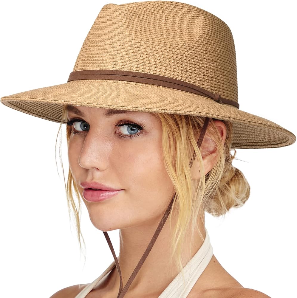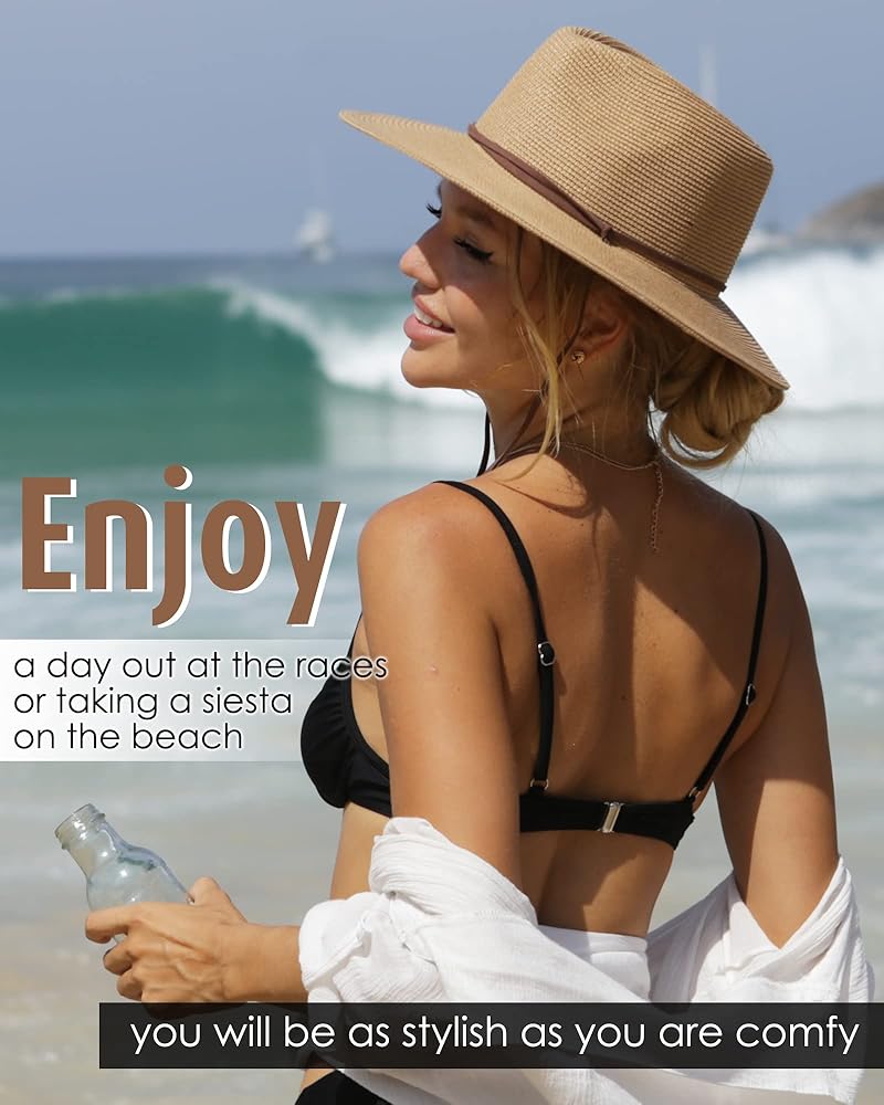 قبعة نسائية من القش ذات حافة واسعة مصنوعة من ورق قش عالي الجودة، تمنحك حماية رائعة من الشمس في جميع أنحاء الوجه والرقبة والألوان المحايدة تتماشى مع كل شيء؛