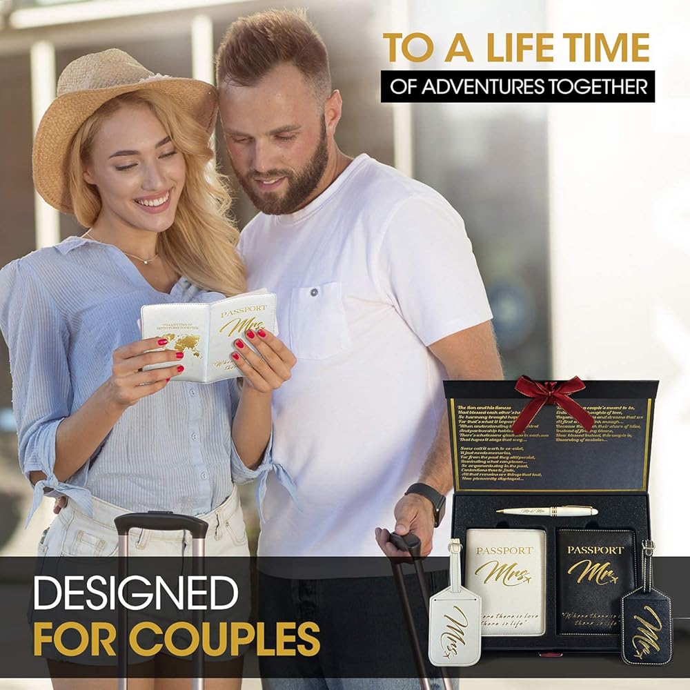 •  هدية زفاف فريدة من نوعها - يحصل الأزواج الذين يقضون شهر العسل على الكثير من الهدايا. تأكد من أن ما يخصك هو شيء يجب أن تتذكره مع شيء مضمون أن يبرز! إن حامل جواز السفر وبطاقات الأمتعة للسيد والسيدة هذا هو شيء سيريده أصدقاؤك بالفعل، وليس شيئًا سيجلس فقط في خزانة تجمع الغبار! هدية حفل الزفاف المثالية للعروس، هدايا الزفاف للعروس والعريس، هدايا عيد الميلاد للأزواج الذين لديهم كل شيء، هدايا السيد والسيدة، الذكرى السنوية أو "فقط" لأنها هدية.