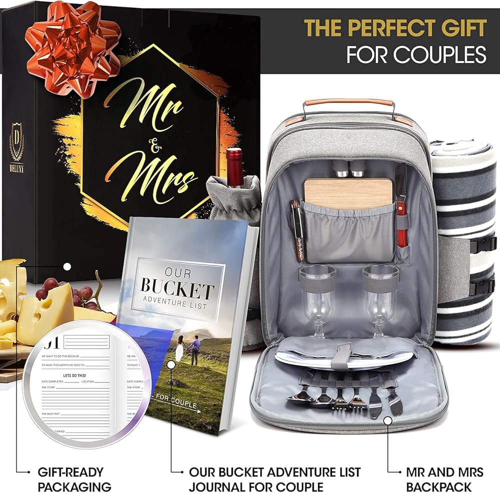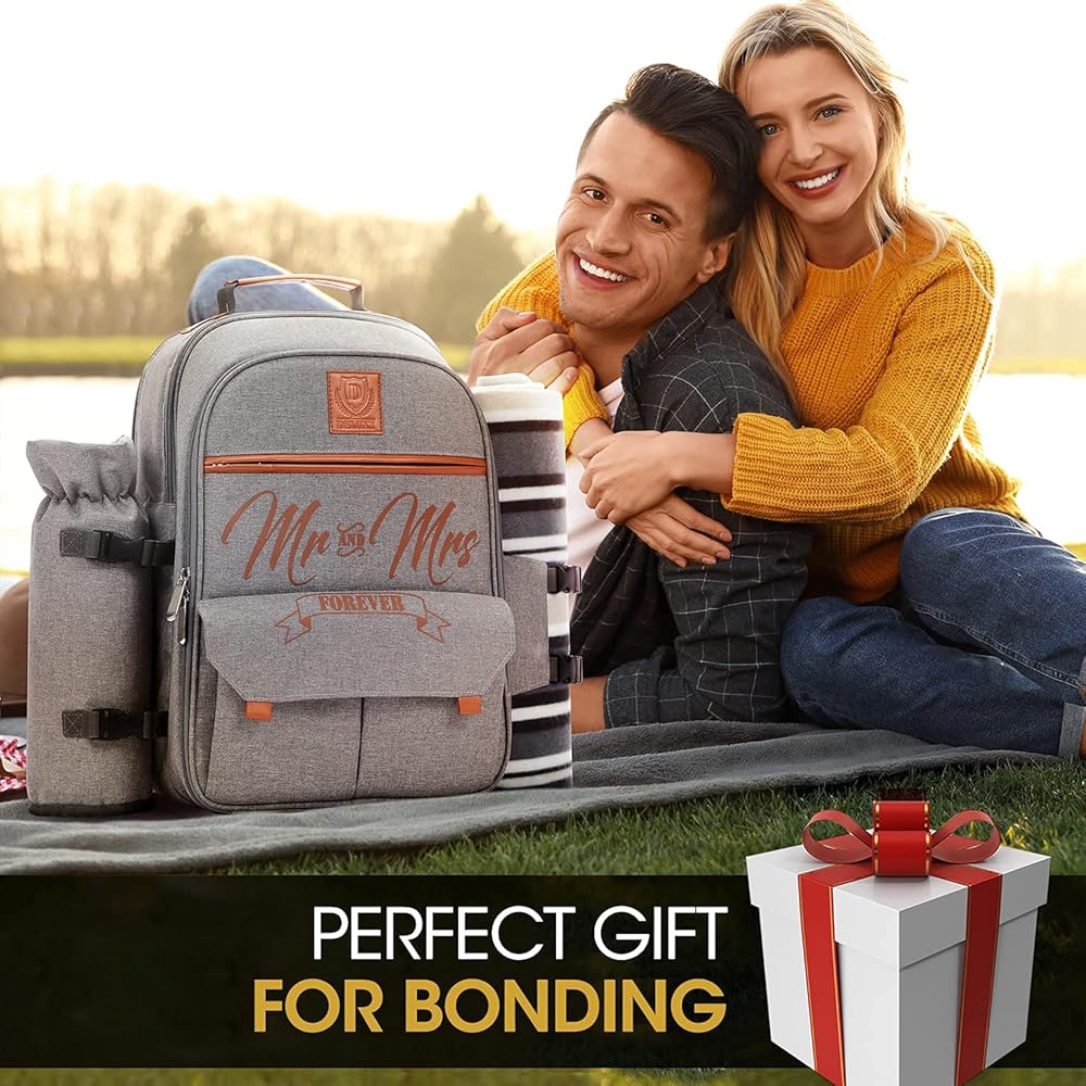 • ðŸ'«مجموعة هدايا حائزة على جوائز - حقيبة الظهر السيد والسيدة بيكنيك الخاصة بنا تمثل هدية مثالية لهدايا الزفاف للعروس والعريس، وهدايا العروس، وهدية الذكرى السنوية للأزواج، وهدايا الخطوبة للنساء، والعروس لتكون هدايا لها، وهدية لها. وهداياها، والذكرى السنوية السعيدة، وهدايا الزفاف الجديدة، وهدايا الذكرى السنوية للآباء. تأتي هذه الحزمة الكاملة في عبوة جميلة. لا حاجة لتغليف الهدايا!