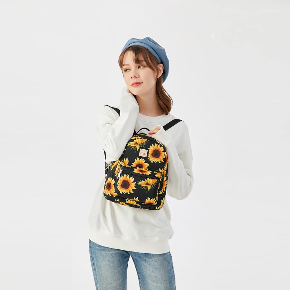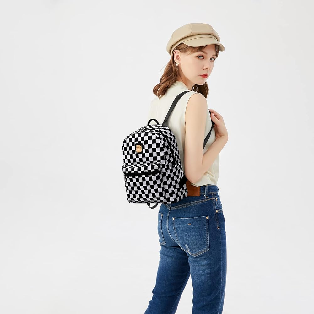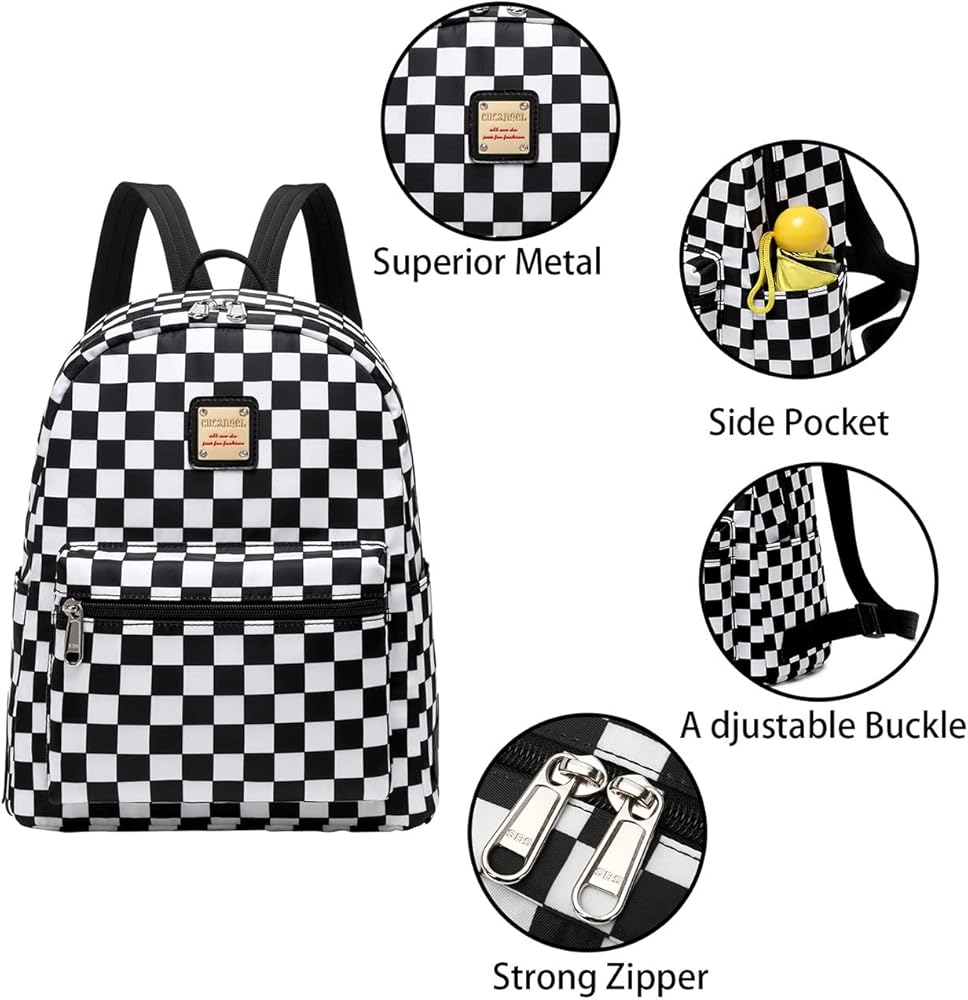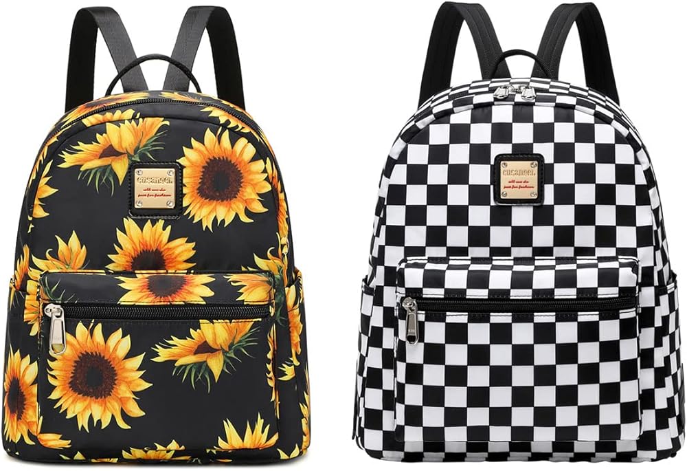 حقيبة ظهر صغيرة من Cusangel للنساء والفتيات، وحقيبة ظهر عباد الشمس وحقيبة ظهر بنقش مربعات باللونين الأسود والأبيض