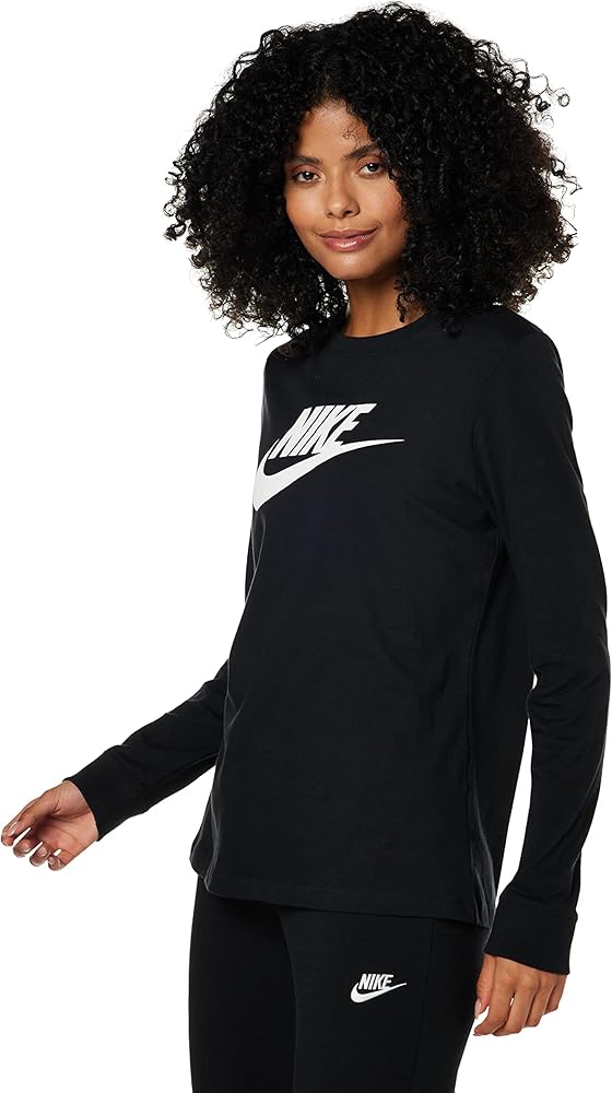 • نايك تي شيرت قطني مريح بأكمام طويلة للنساء