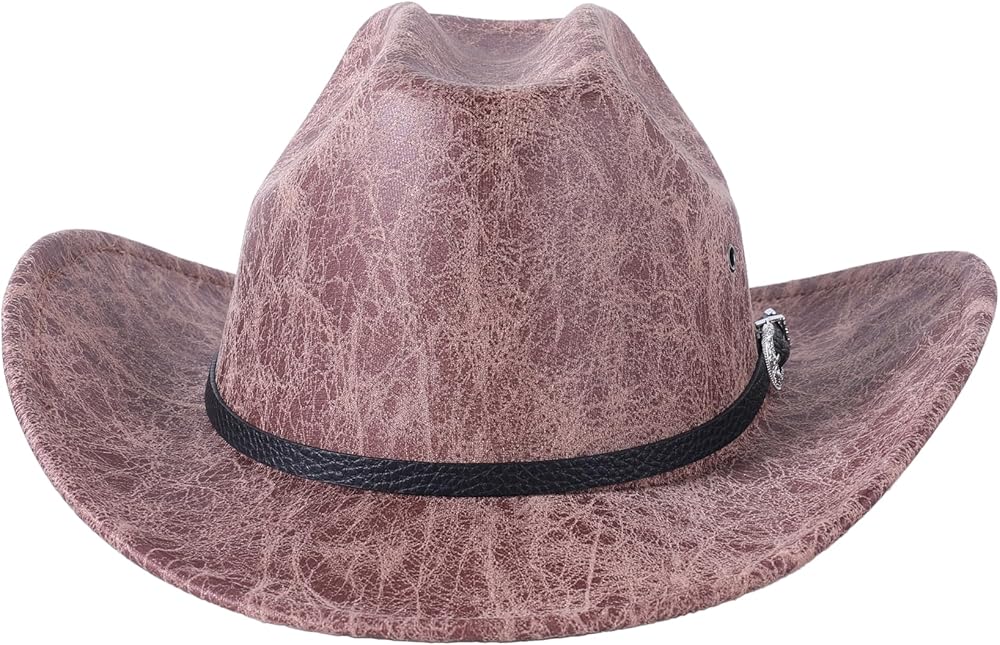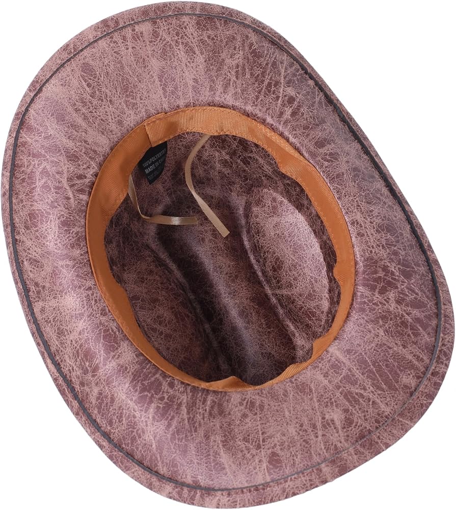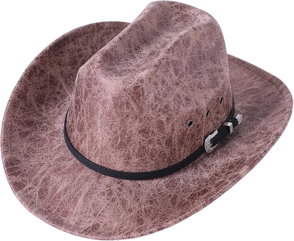 Lanzom Womens Mens Leather Western Hat Cowgirl hat Cowboy Hat Kentucky Derby Hat