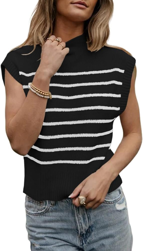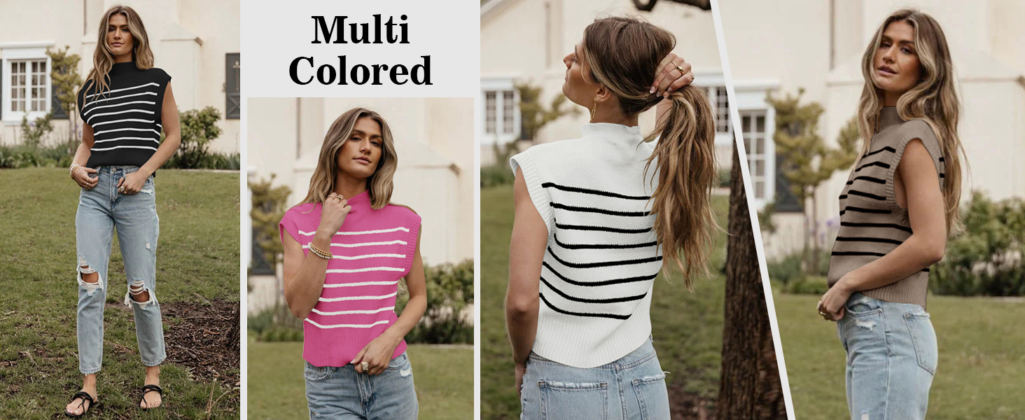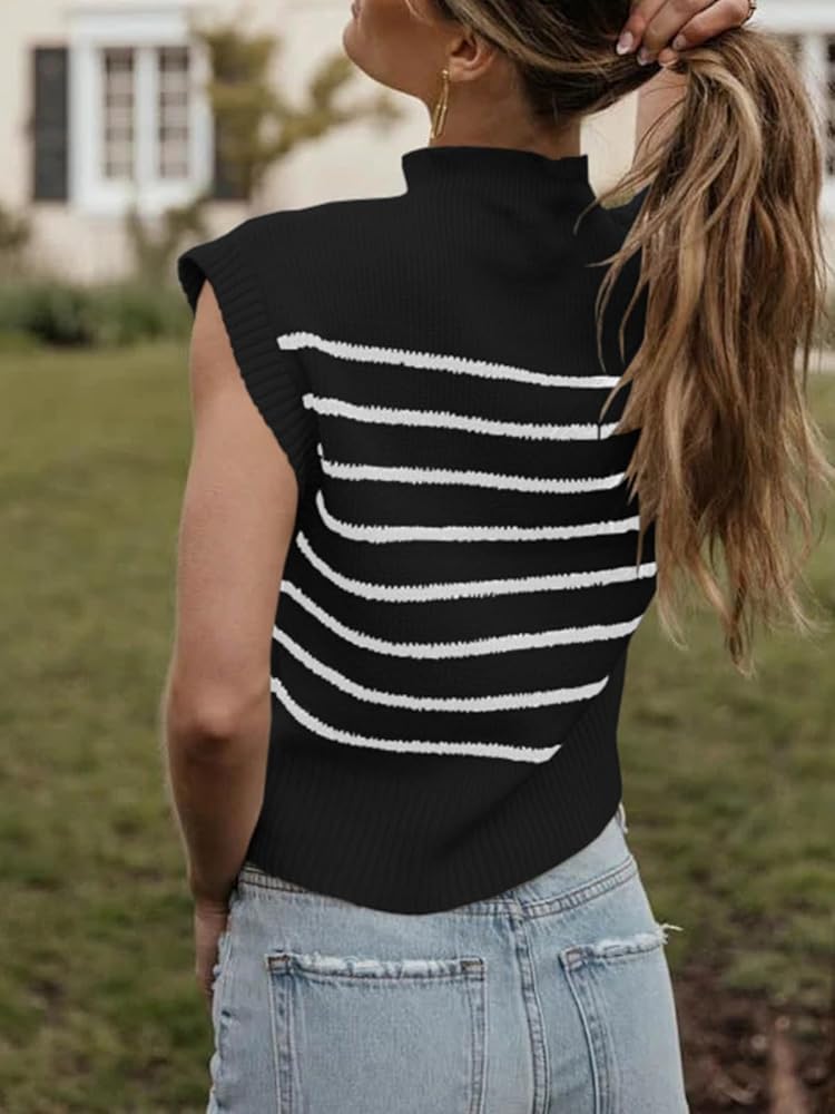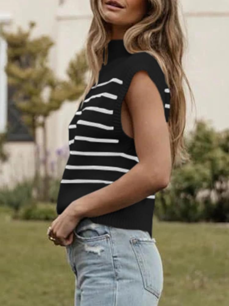 متعددة الاستخدامات ومريحة - سترة بدون أكمام مخططة عصرية ومتعددة الاستخدامات، مثالية لإضافة طبقة أنيقة إلى ملابسك. مصنوع من نسيج محبوك ناعم ومريح، يتميز هذا القميص بدون أكمام بتصميم بياقة مدورة بدون أكمام مثالي للمواسم الانتقالية. تأتي القمصان بدون أكمام للنساء في مجموعة متنوعة من الأنماط التي تتيح لك العثور على المظهر المثالي