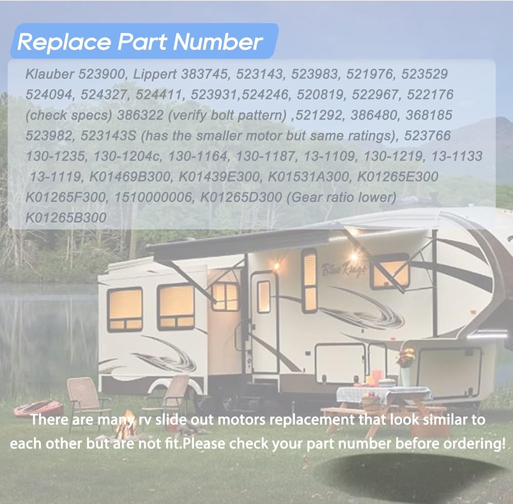 محرك منزلق للخارج RV Power Gear، PN 523900 523143 523983 521976 محرك منزلق للخارج، محرك علبة التروس البديل، عمود مزدوج 12 فولت - ضمان لمدة 3 سنوات