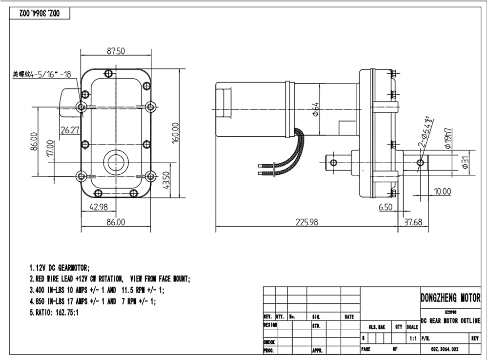 • 【المواصفات】السرعة 9 دورة في الدقيقة @ 862 رطل، 17 أمبير - 12 دورة في الدقيقة @ 400 في الرطل، 9.5 أمبير - 14 دورة في الدقيقة (بدون حمل).