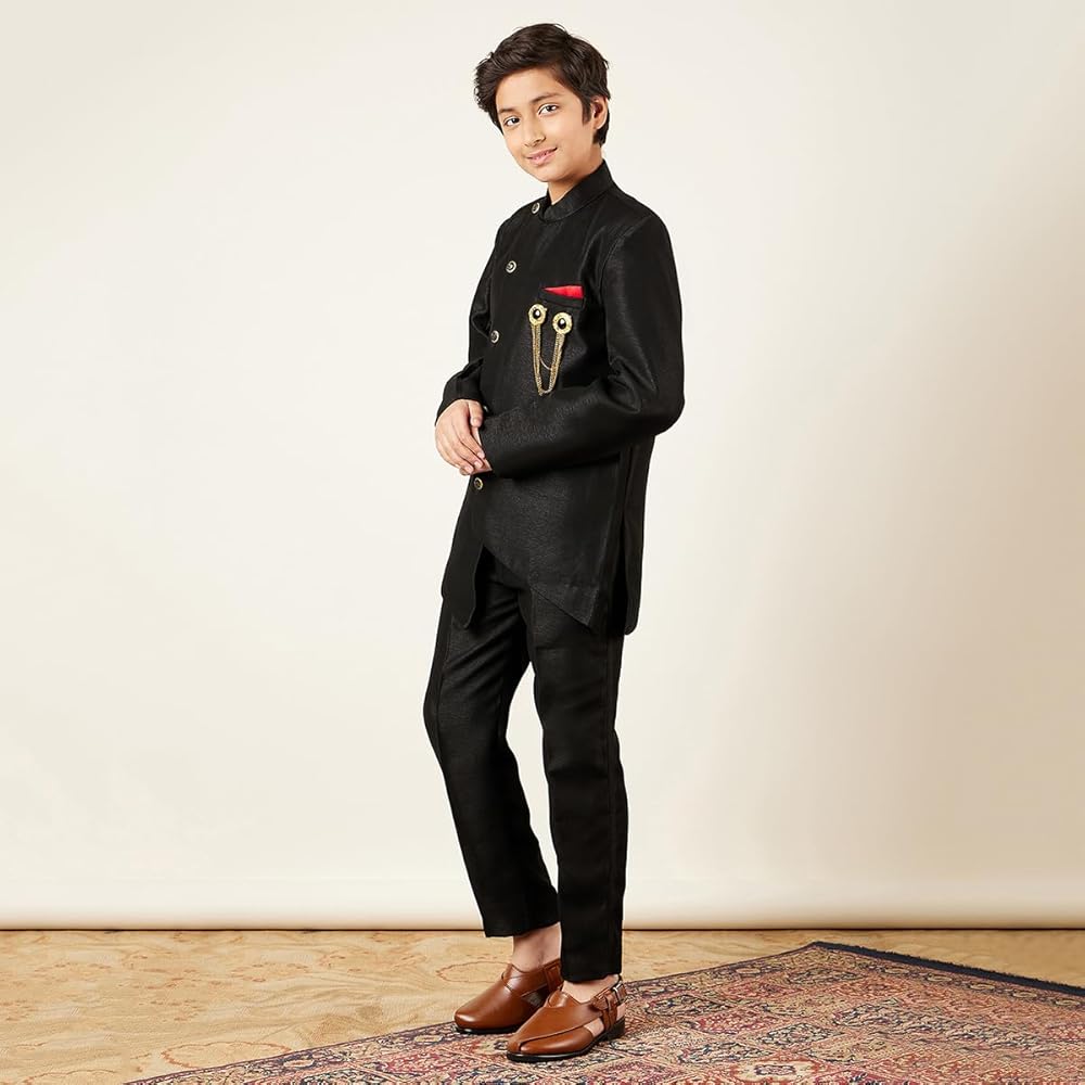 𝗦𝗶𝘇𝗲 𝗮𝗻𝗱 𝗙𝗶𝘁 : يرجى إلقاء نظرة على جدول المقاسات (قبل الطلب) في معرض الصور الخاص بنا على الجانب الأيسر للعثور على مقاسك المثالي. بخلاف ذلك، قد يحدث أن تكون مجموعة الشيرواني صغيرة جدًا أو حتى كبيرة جدًا. تم تصميم المقاس ليناسب المقاس العادي المريح. المقاسات المتوفرة/الفئة العمرية من 1 إلى 16 سنة.