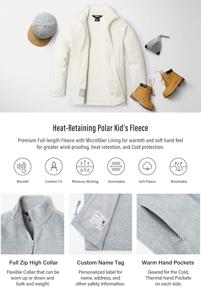 6 سترة من الصوف القطبي بسحاب كامل باللون العاجي