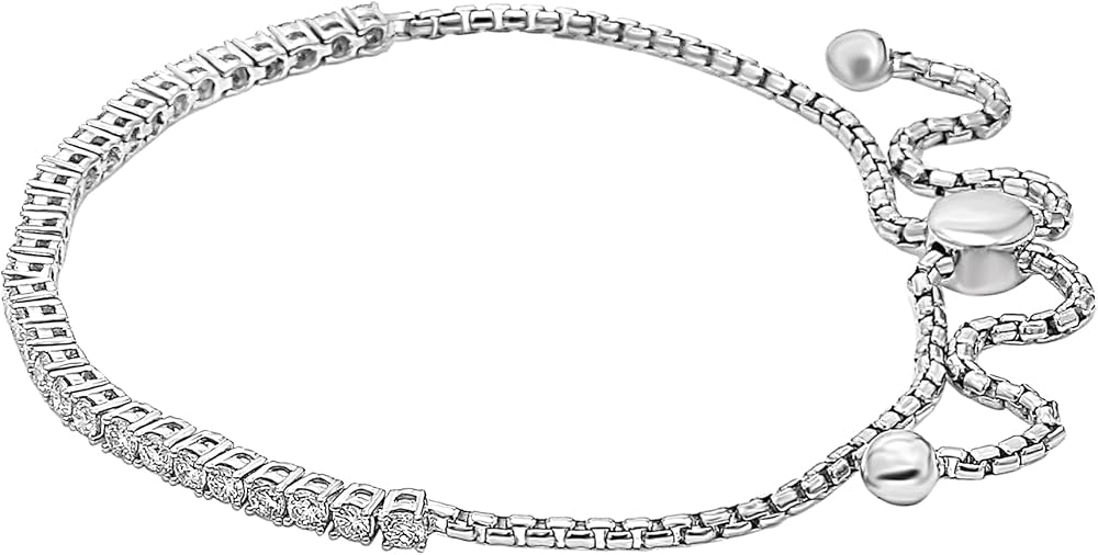 ممتع وعصري، سوار بولو الأنيق هذا هو نمط ستحب وضعه في طبقات. مصنوع من الفضة الإسترلينية، يتميز هذا التصميم الأنيق بصف رفيع من الألماس المتلألئ المزروع في المختبر. يتألق هذا السوار بوزن إجمالي 1 1/2 قيراط من ألماس اف جي في اس-اس اي ولمعان لامع لامع، يمكن تعديل طول هذا السوار حتى 9 انش ويتم تثبيته بمشبك بولو. أضف سوار بولو واحد أو اثنين أو أكثر لخلق مظهرك المخصص الذي من المؤكد أنه سيلفت الأنظار.