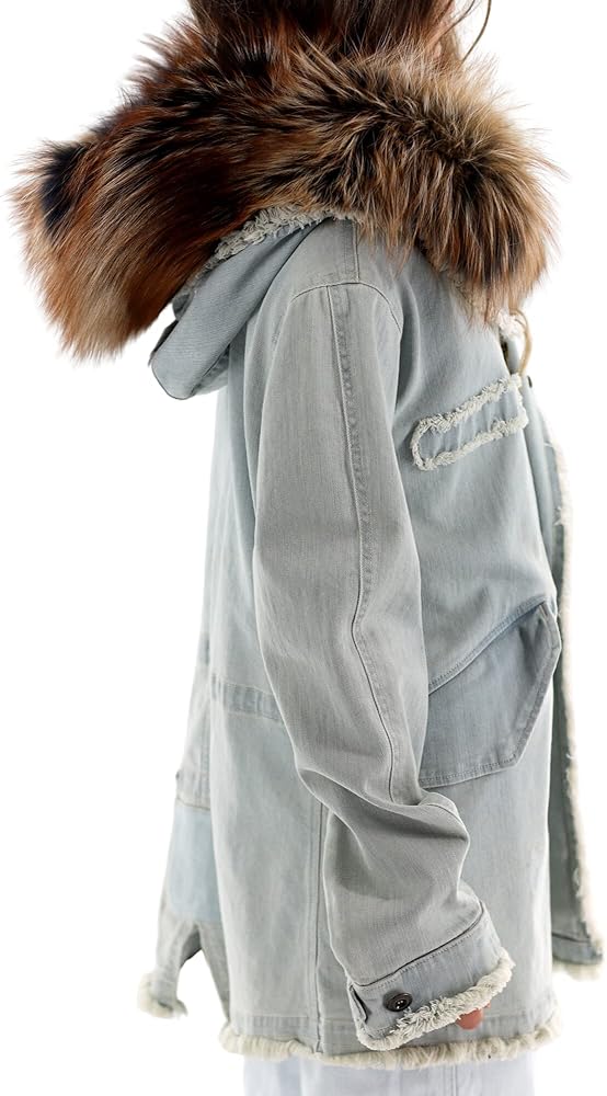 La Fiorentina Classic Parka Denim w/ Genuine Fox Fur Hood - Blue