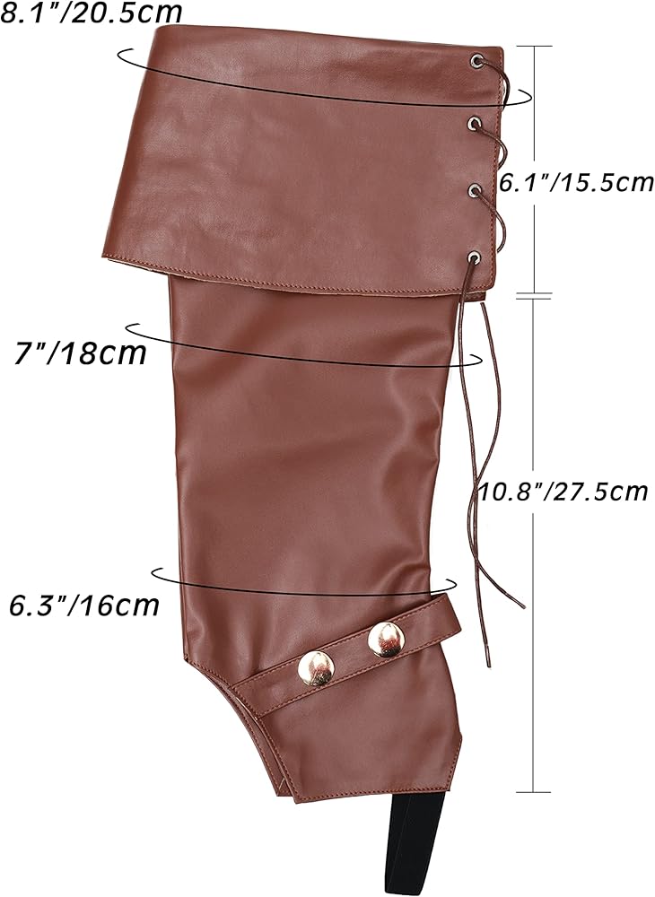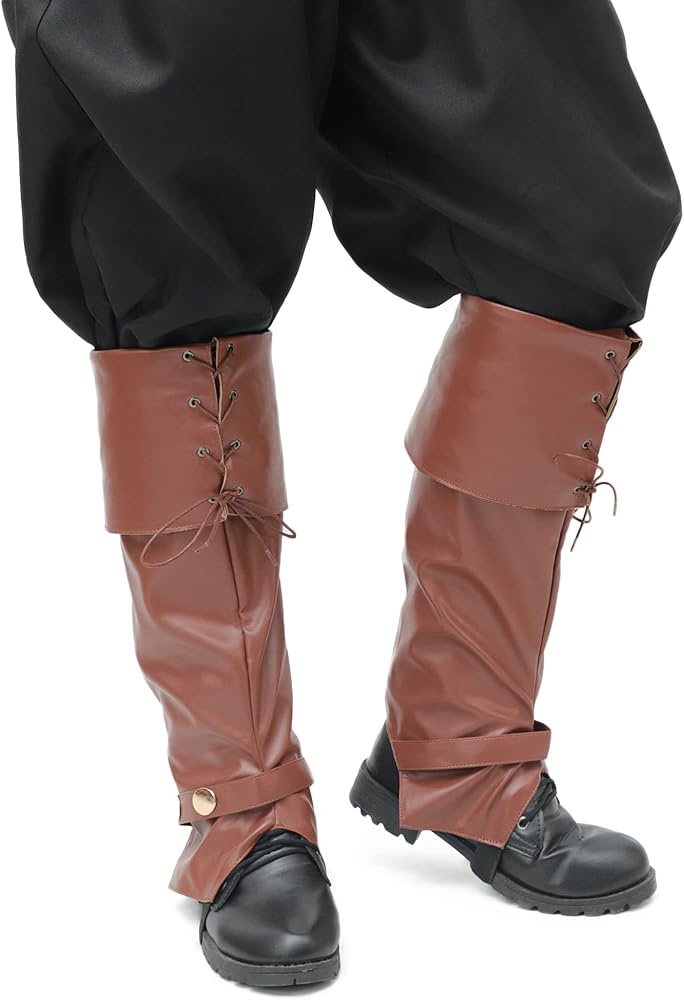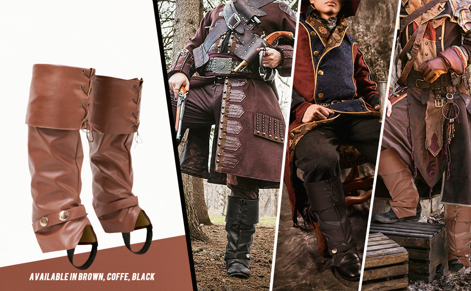 - المناسبات: تعتبر واقيات الساق الرجالية إكسسوارات مثالية للقرصان ورعاة البقر، كما أنها مثالية للهالوين والعروض المسرحية والعروض التنكرية