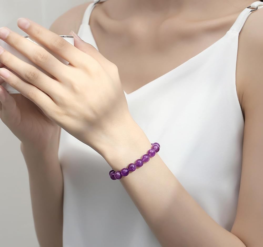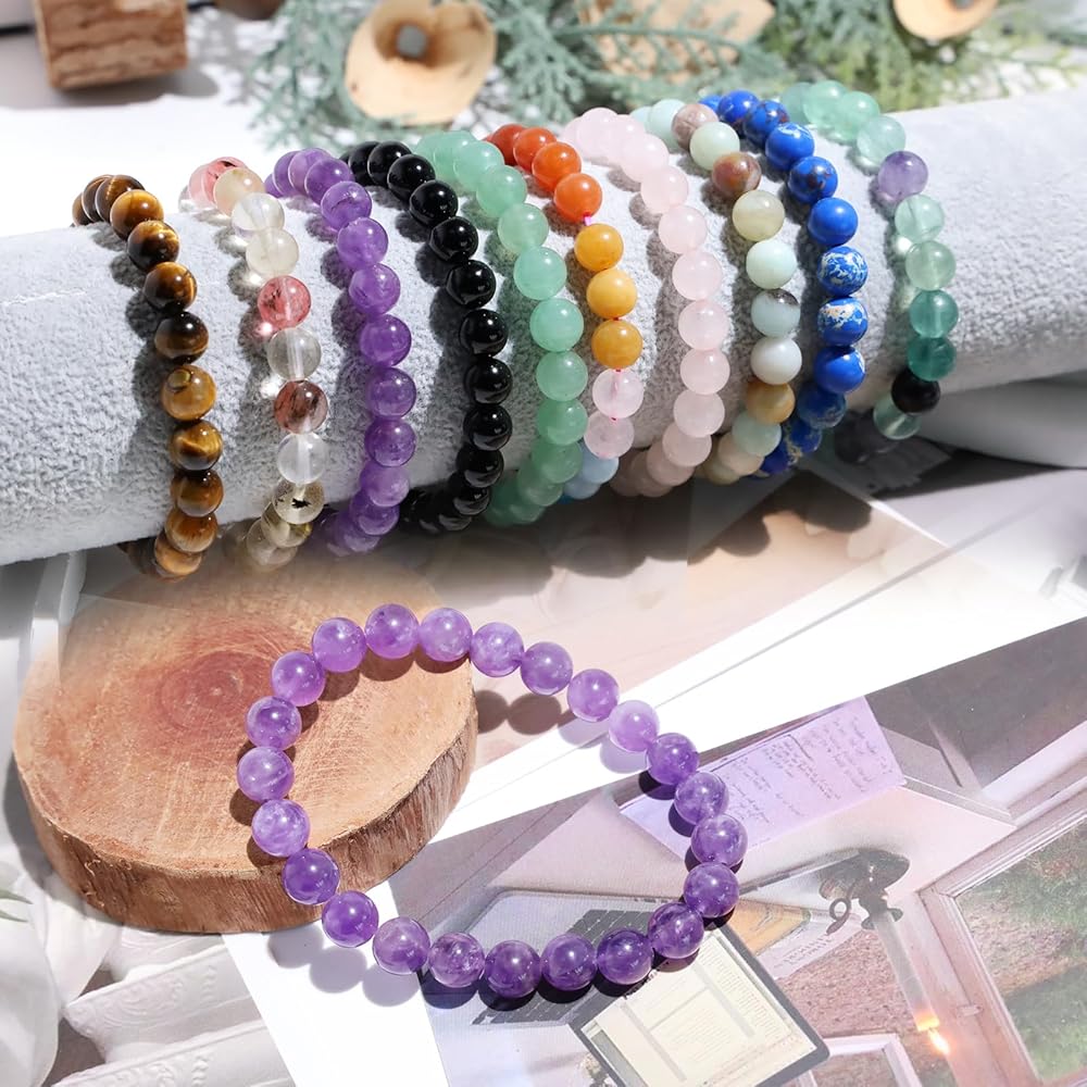 【Natural Stone Bracelet】Natural crystal stones, polished into smooth & round beads, with stretch bracelet string, handmade, carefully prepared fashionable amethyst bracelet for you!