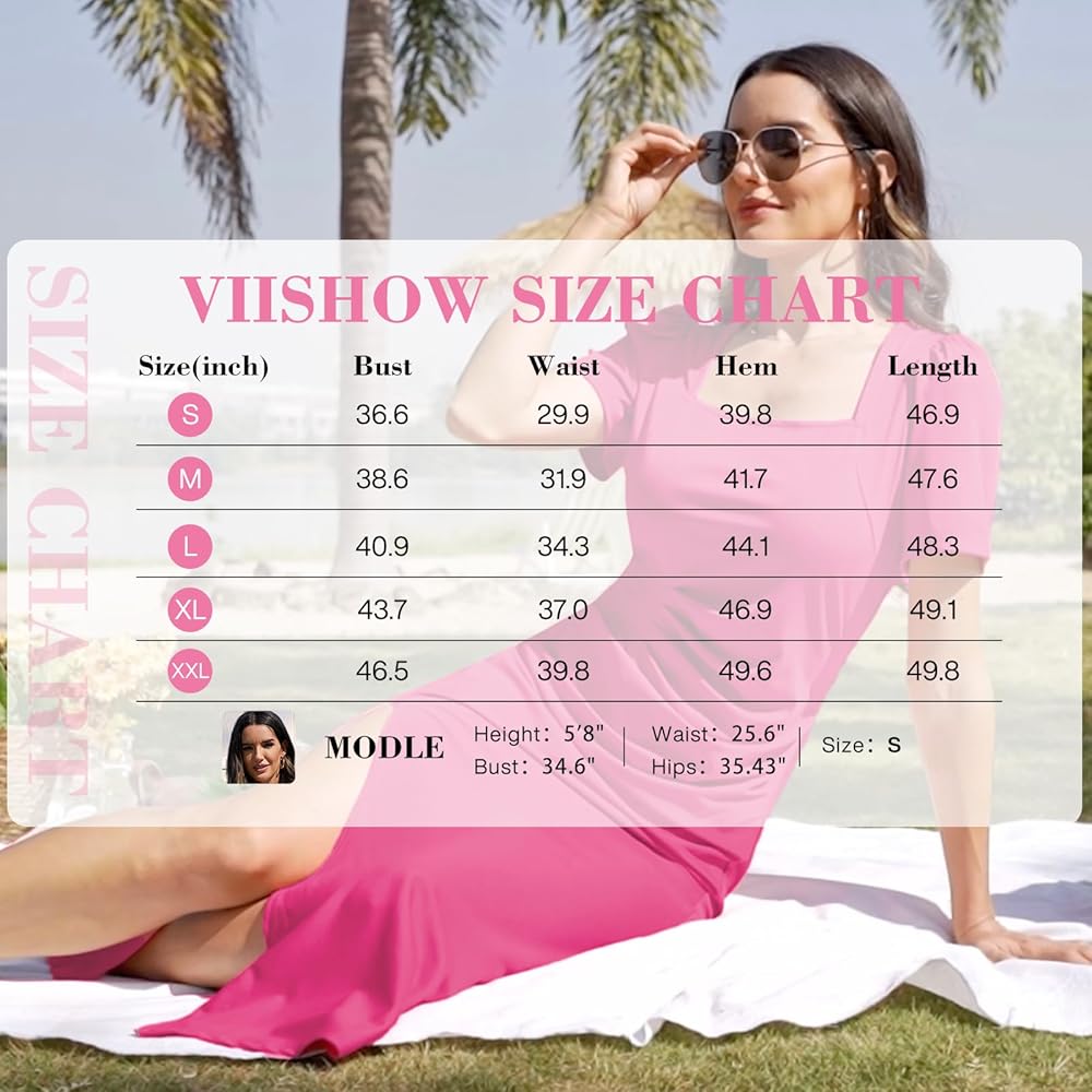 VIISHOW فستان نسائي صيفي 2024 برقبة مربعة بقصة ضيقة فستان سهرة غير رسمي مكشكش للحفلات والنوادي وحفلات الكوكتيل