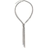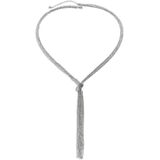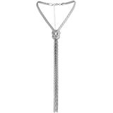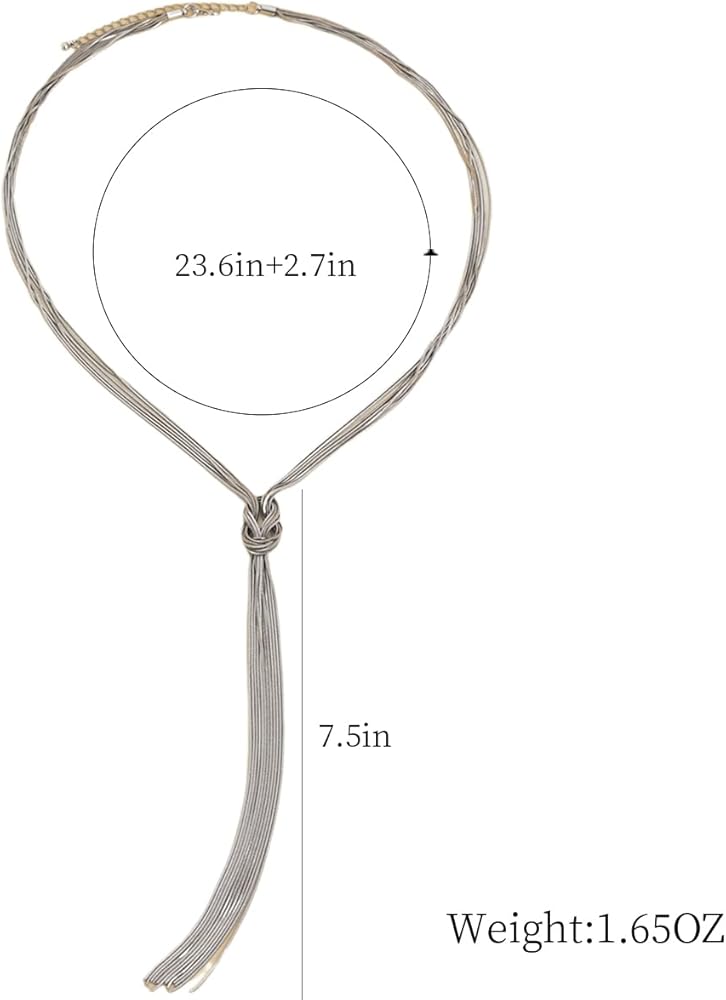 المواصفات: طول القلادة 23.6 بوصة، طول الشرابة 7.5 بوصة، سلسلة تمديد 2.7 بوصة، الوزن 1.65 بوصة، لون فضي.