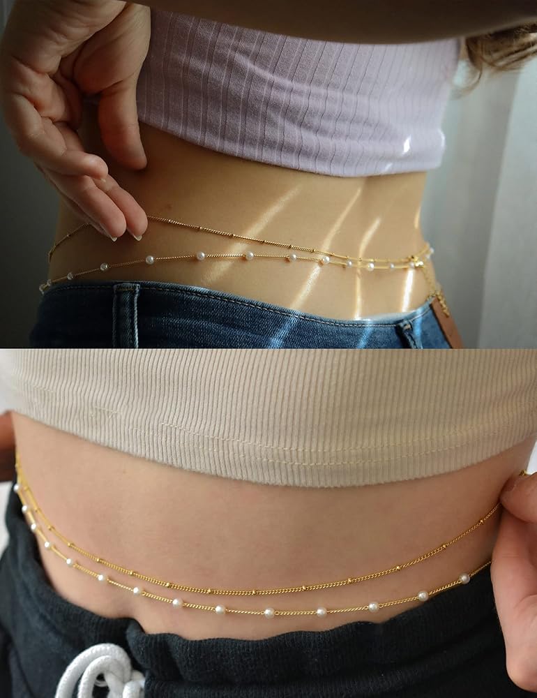 ✨سلسلة خصر مطلية بالذهب عيار 18 قيراط✨ سلاسل الخصر ذات الطبقات مصنوعة من النحاس عالي الجودة ومطلية بالذهب عيار 18 قيراط. مقاوم للماء، لا يبهت أو يصدأ، ويمكن استخدامه لفترة أطول. خالية من النيكل والرصاص، ولا تسبب الحساسية. لن تحول مجوهرات سلسلة البطن الرائعة هذه بشرتك إلى اللون الأخضر أو الأحمر أو الحكة؛ سوف تكون غير ضارة لجسمك.