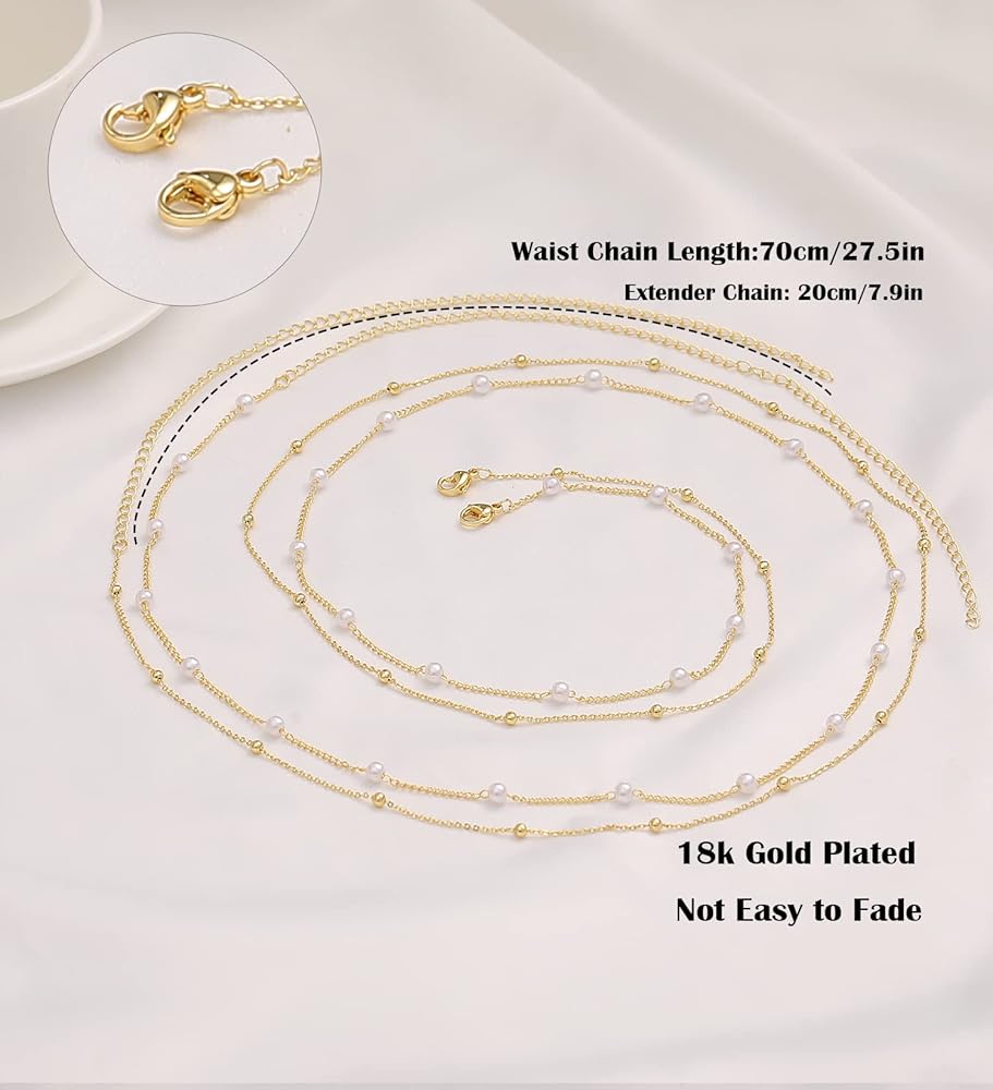 🍍حجم قابل للتعديل🍍 يبلغ طول كل سلسلة خصر ذهبية 70 سم / 27.5 بوصة مع سلسلة تمديد 20 سم / 7.9 بوصة. مناسب للخصر مقاس 27.5 بوصة - 35.5 بوصة. يمكن تعديله بسهولة بنفسك، ومناسب للنساء والفتيات المراهقات تقريبًا.
