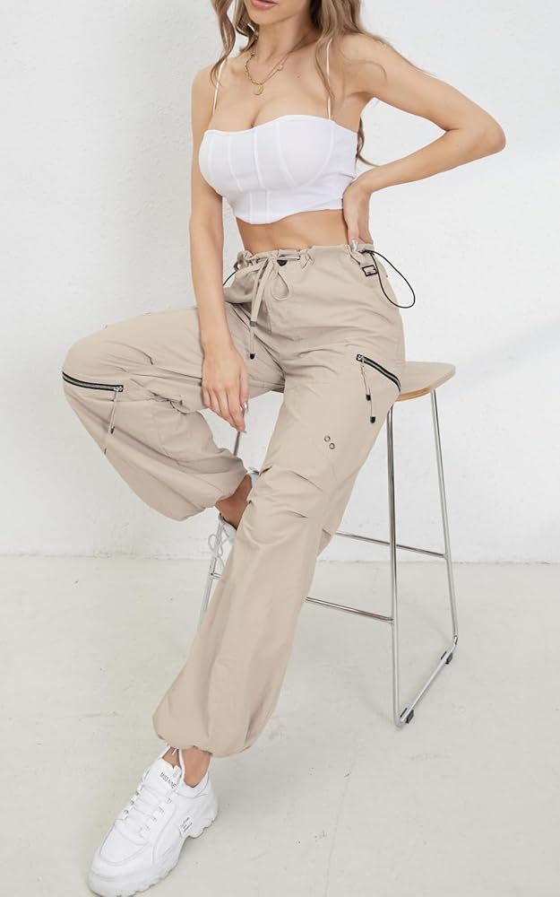 المادة - سراويل كارجو النسائية الفضفاضة مصنوعة من قماش باراشوت خفيف الوزن وناعم. يوفر القماش خفيف الوزن المتانة والارتداء طويل الأمد، مما يضمن قدرته على تحمل الاستخدام اليومي.