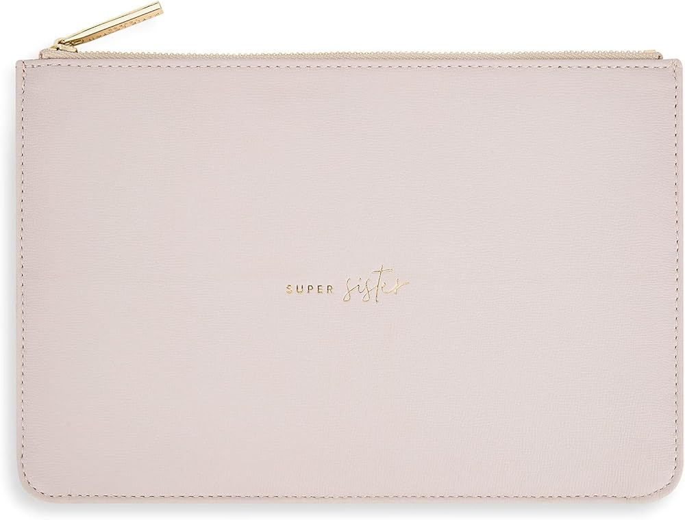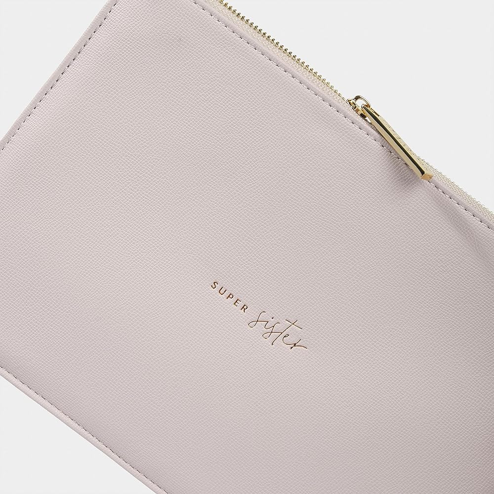 • Designed by Katie Loxton, this "Super Sister" handwritten sentiment pouch is finished in a beautiful colors that really pop and make a statement all season long
