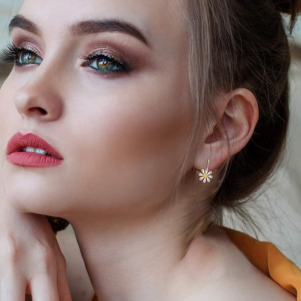 🌻【المواصفات】: حلق الأقحوان بالكامل مصنوع من الفضة الإسترلينية، مما يضمن الجودة العالية. الارتفاع الإجمالي: 20 مم/0.78 بوصة، الأقحوان: 13*13 مم/0.51 بوصة، عرض عمود الأذن: 0.8 مم = 20 جم، مناسب لأي فتحة أذن، تصميم الرافعة يضمن ارتداؤه لفترة طويلة وليس من السهل انزلاقه من أذنيك