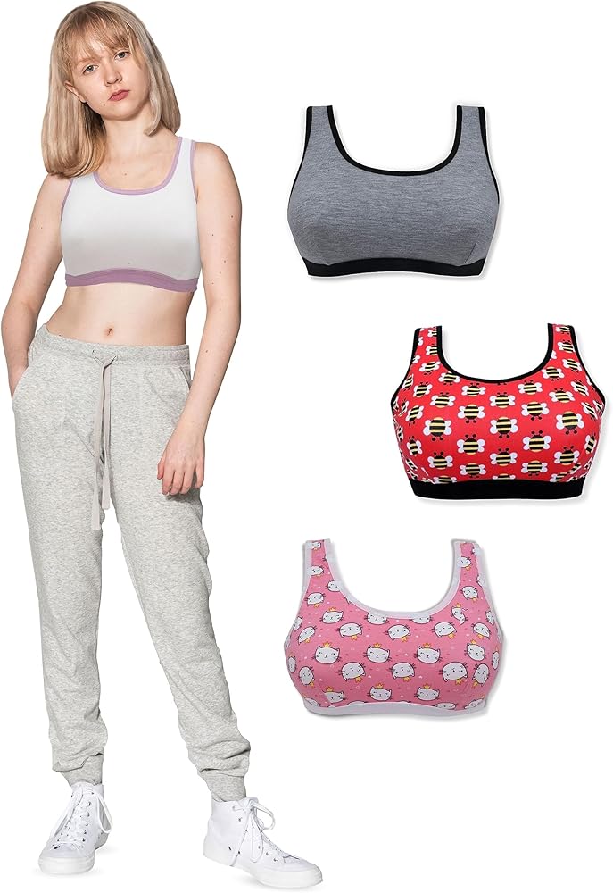 المادة: حمالات الصدر الرياضية هذه للفتيات خفيفة الوزن ومصنوعة من نسيج فائق النعومة. مصنوعة من 95% قطن و5% إيلاستين، هذه الصدريات للفتيات ناعمة ومتينة.