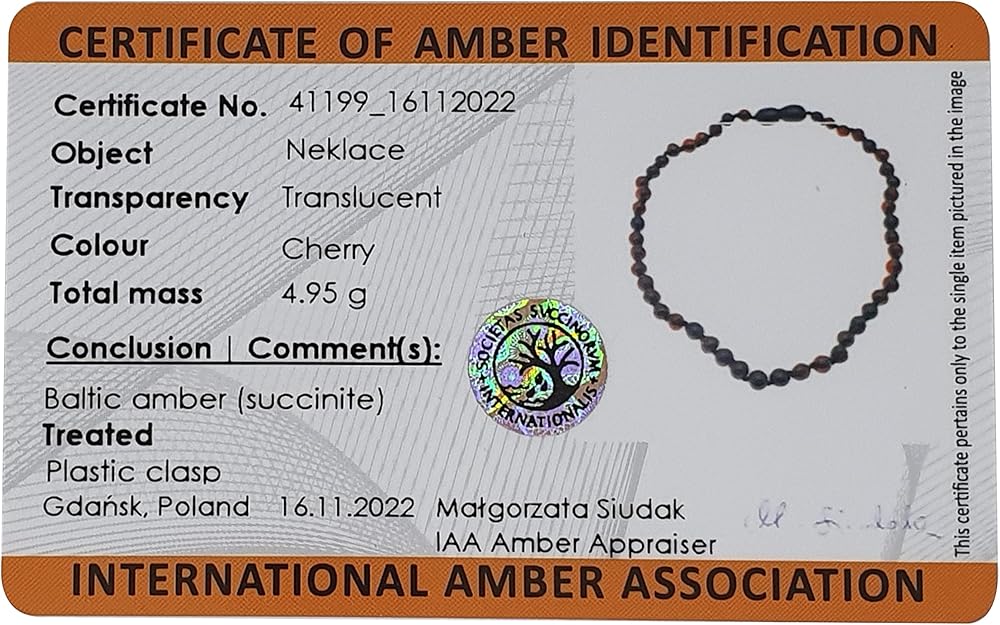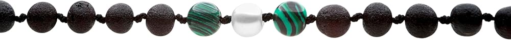 عقد من العنبر الأصلي من بحر البلطيق مصنوع من الملكيت الكرز غير المصقول واللؤلؤ 33 سم (13 بوصة)