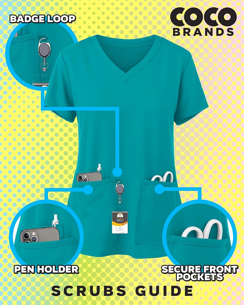 SOFT, STRETCHY COMFORT: Made with a soft, high-quality fabric, these scrub tops provide superior stretch, flexibility, and ease of movement. Suitable for active workdays.
