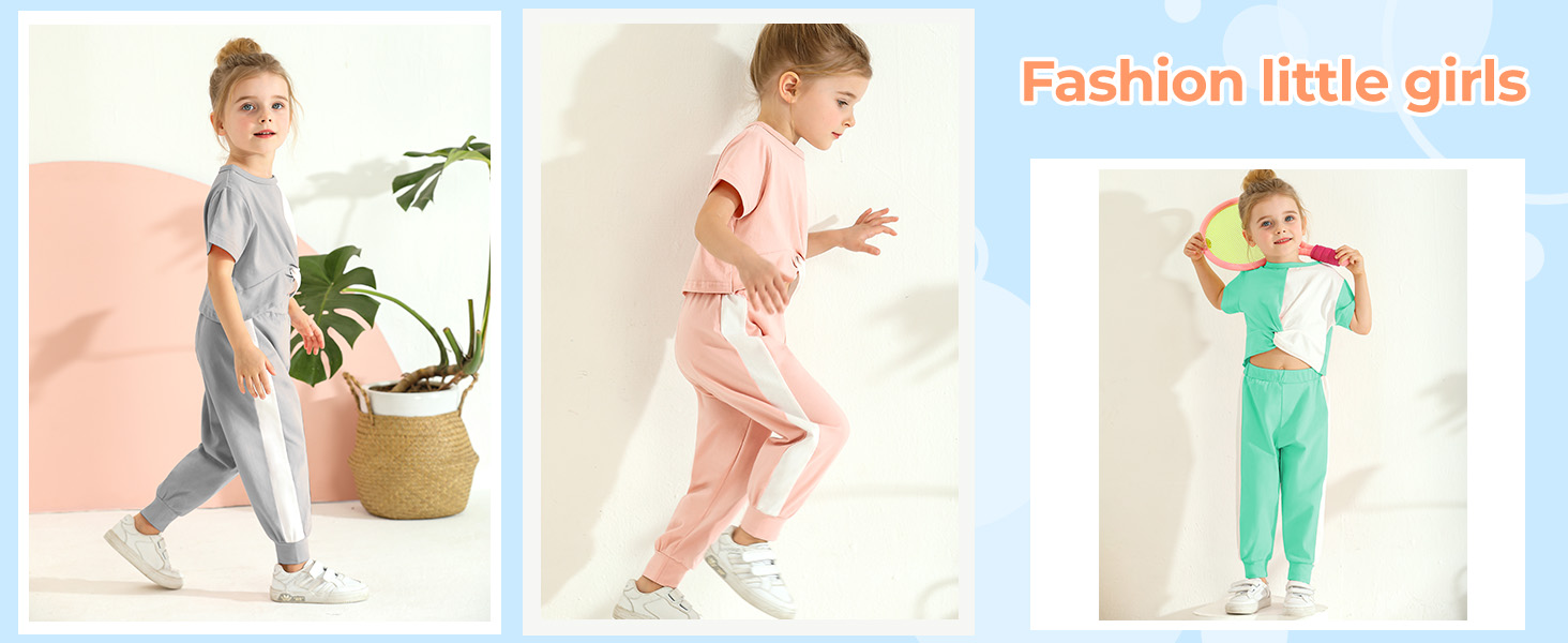 نسيج مريح: مجموعة ملابس للفتيات الصغيرات فائقة النعومة، مجموعة كاجوال للفتيات مريحة ومسامية خاصة للأنشطة الخارجية في الربيع والصيف.