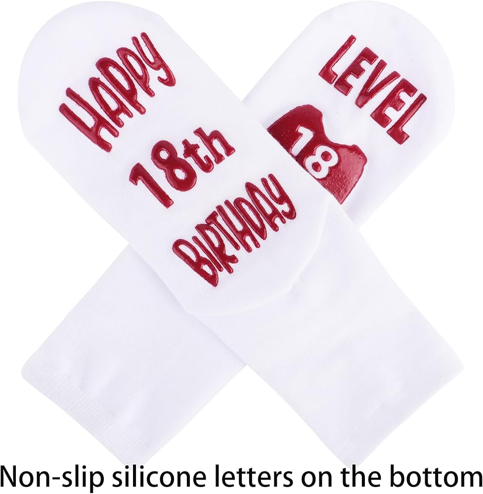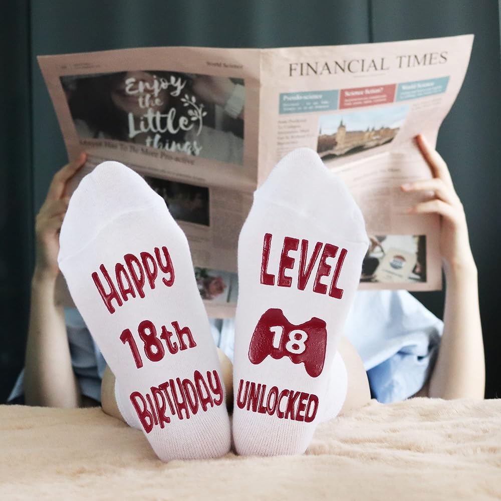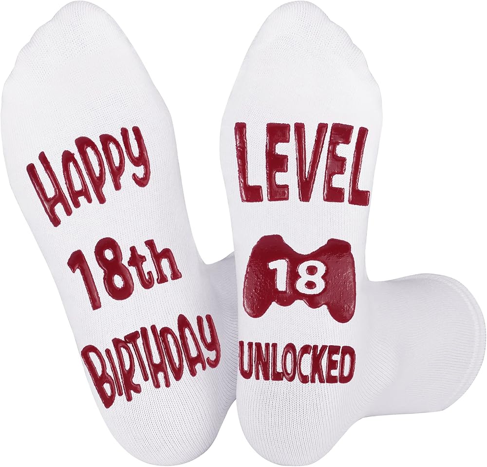 • Funny Design: “Happy 18th BIRTHDAY. LEVEL 18 UNLOCKED.” printed on these funny socks. Put on these fun socks, our girls would have a great day.