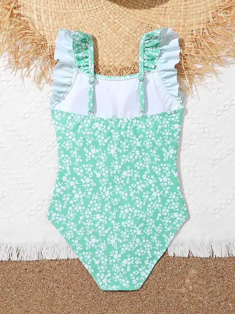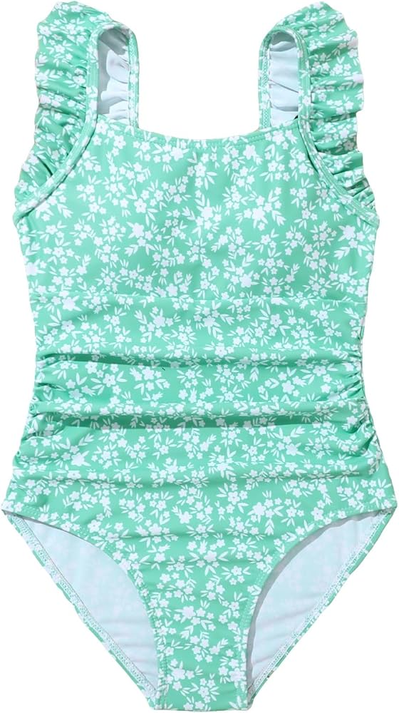 بدلة سباحة من قطعة واحدة مطبوعة بالزهور من MakeMeChic للفتيات مكشكشة ومكشكشة