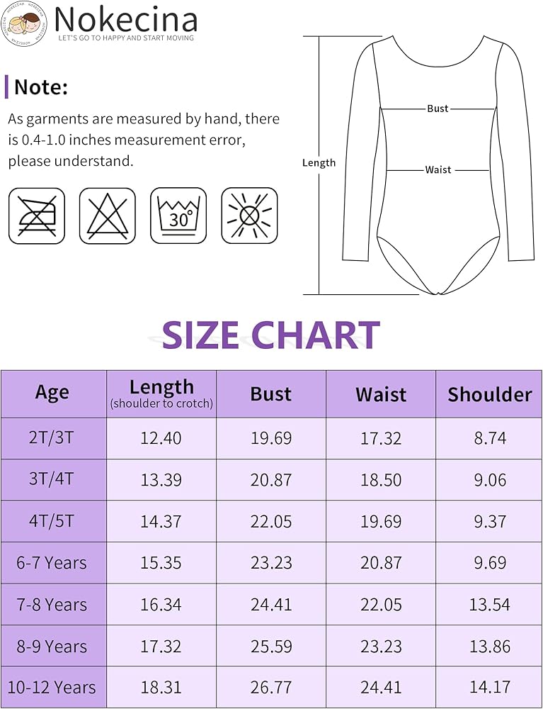 Friendly neckline, the front neckline is higher than the back, with perfect coverage, no matter when and where to protect the child's privacy, but also easy for children to put on and take off. Long sleeve design allows girls to maintain confidence in the cold winter and feel the charm of gymnastics. Magic color with hot stamping technology, so that the athletic bodysuits bright, vivid, more shiny, after multiple washing, can also maintain the perfect appearance, no deformation, is the best choice for girls Christmas gifts and birthday gifts.