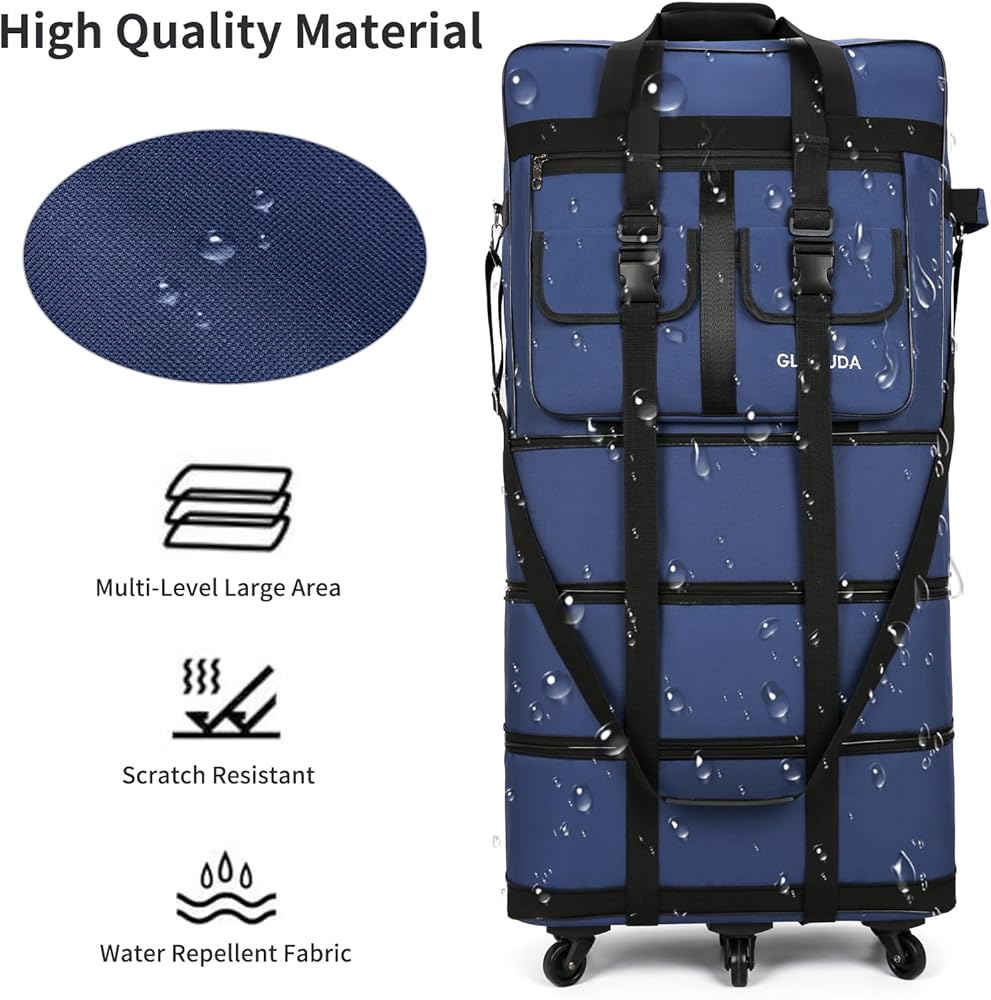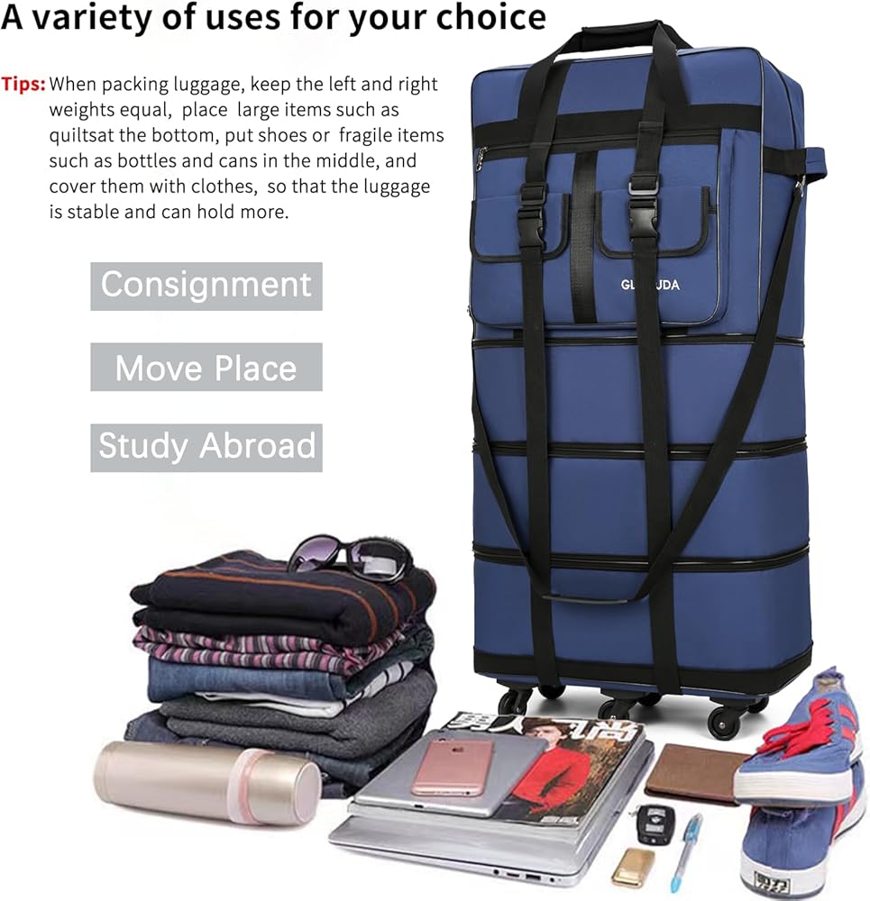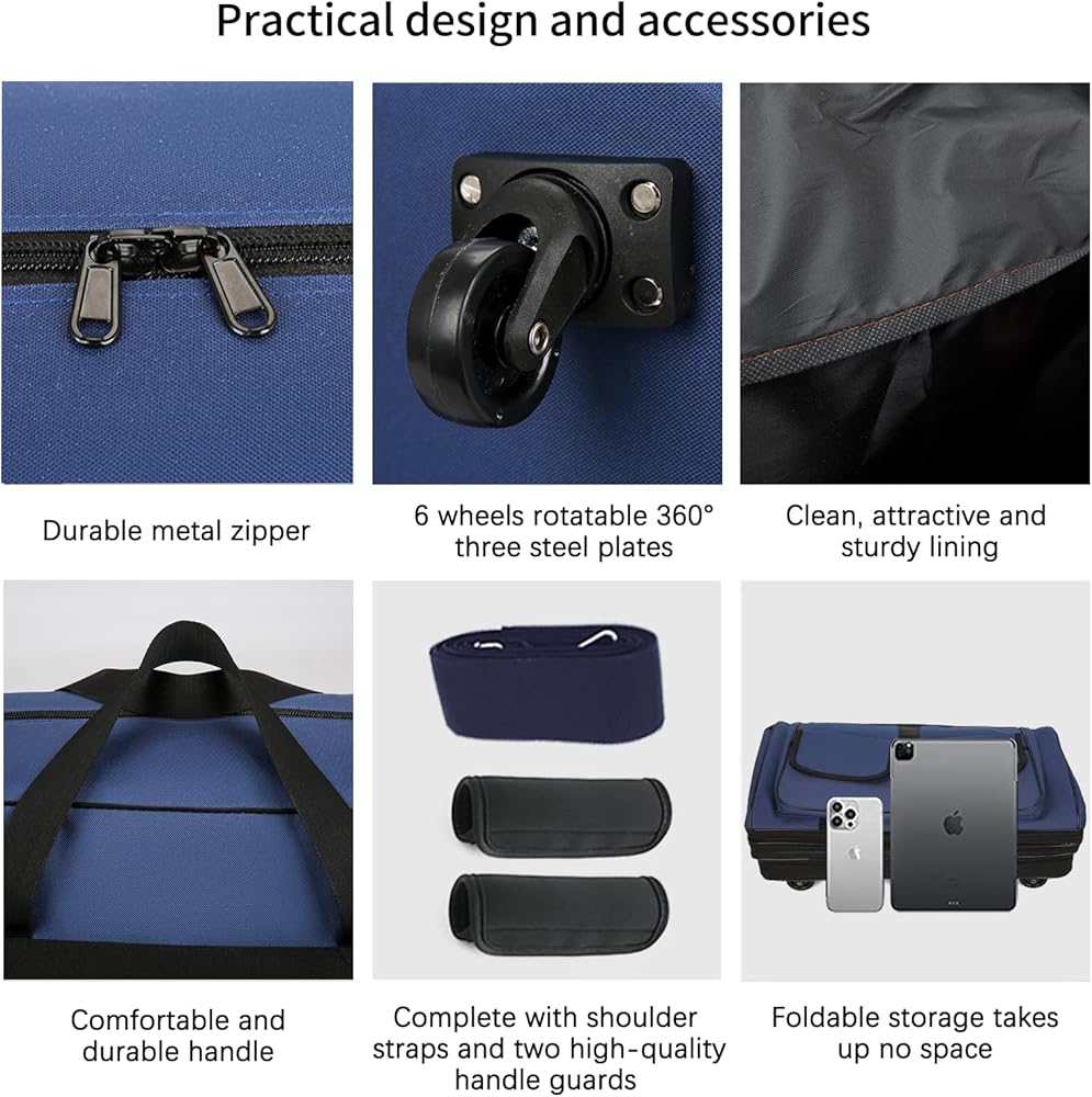 【متعددة الأغراض】تعد هذه الحقيبة المتدحرجة ذات العجلات مثالية للرحلات العائلية والسفر الدولي ورحلات العمل والتنقل بالمنزل وما إلى ذلك. كما أنها حقيبة رائعة ذات سعة كبيرة لنقل وتخزين العناصر كبيرة الحجم مثل البطانيات واللحاف والمعاطف وما إلى ذلك. .