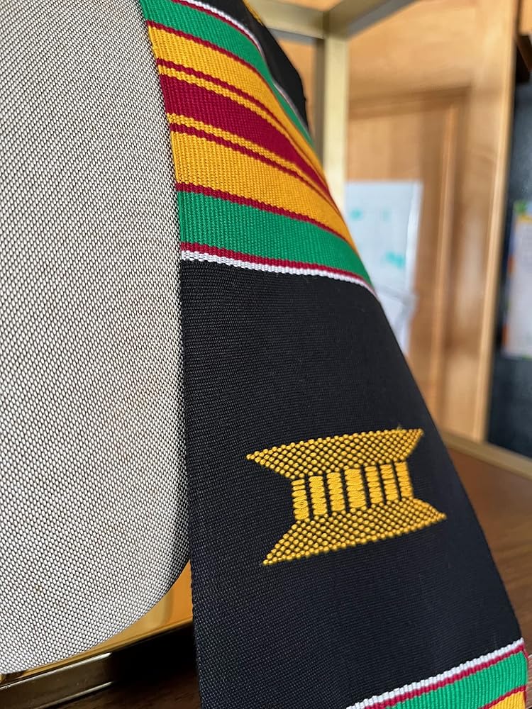 • 1. This graduation Kente stole is handmade weave in Ghana. 🎓100% cotton. 🎓The standard size for the stole is 72 inches long by 4.5 inches wide. 🎓🎓This is worn by both men and women.