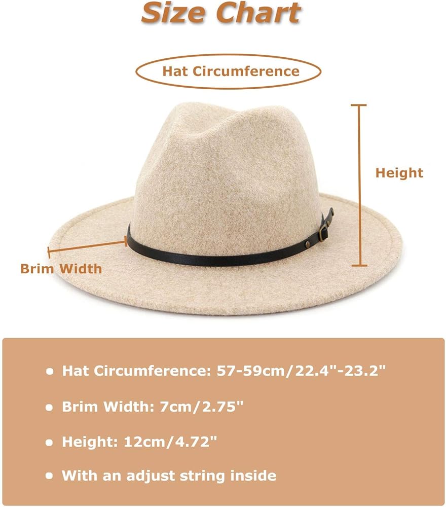 الحجم: متوسط (7 1/8 - 7 3/8)؛ محيط القبعة: 57-59 سم/22.4 بوصة - 23.22 بوصة؛ عرض الحافة: 7 سم/2.75 بوصة؛ الارتفاع: 12 سم/4.72 بوصة؛ مع خيط قابل للتعديل بالداخل، مقاس واحد يناسب معظم النساء