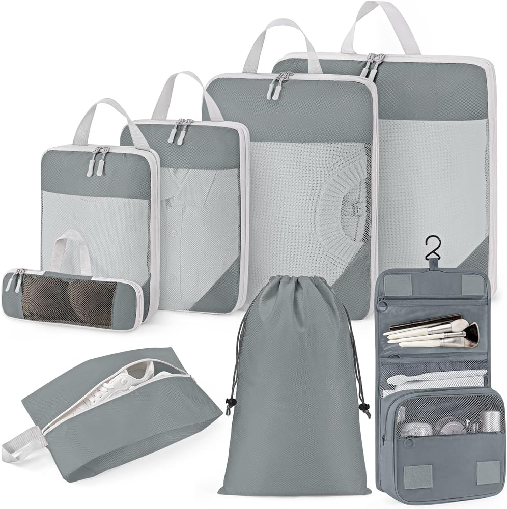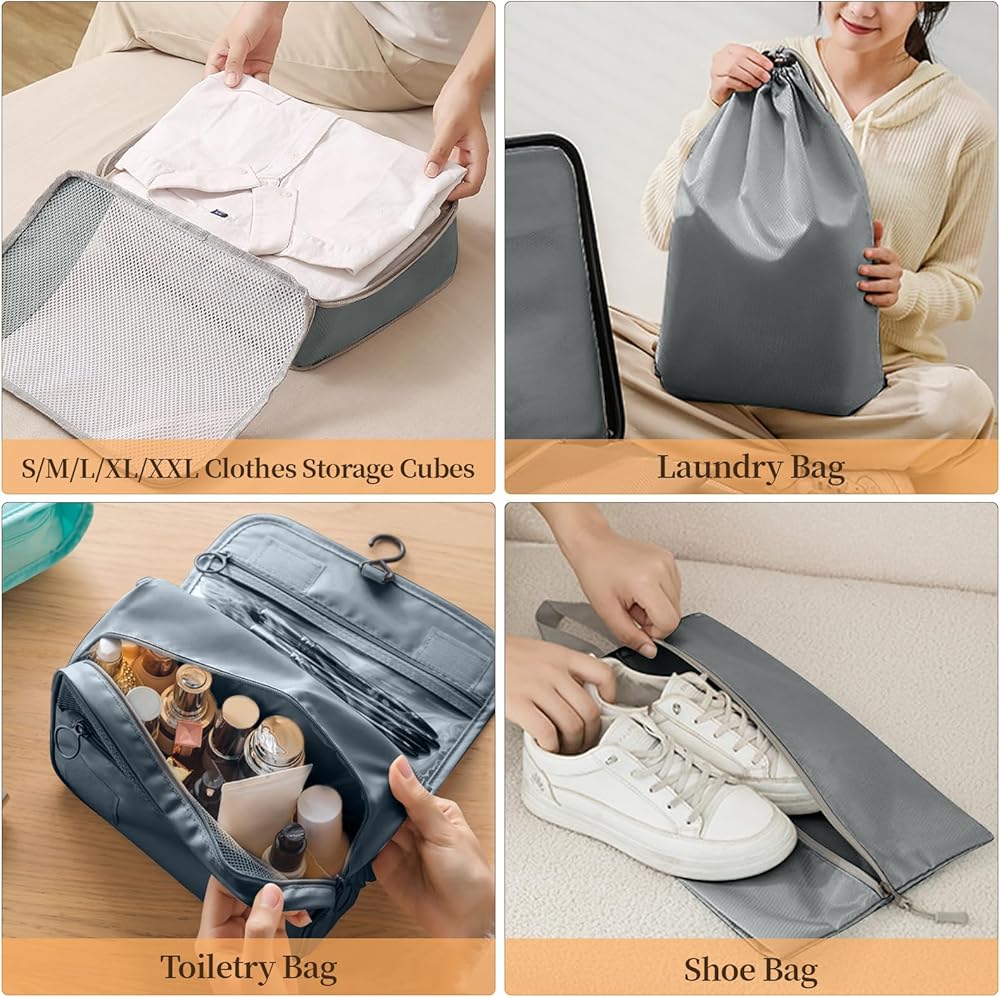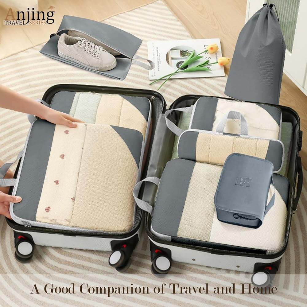【مجموعة 8 قيمة فائقة】تحتوي مجموعة أكياس التعبئة المضغوطة هذه على حقيبة تخزين الملابس *4، حقيبة الملابس الداخلية *1، حقيبة مستحضرات التجميل *1، حقيبة الأحذية *1، حقيبة برباط *1.