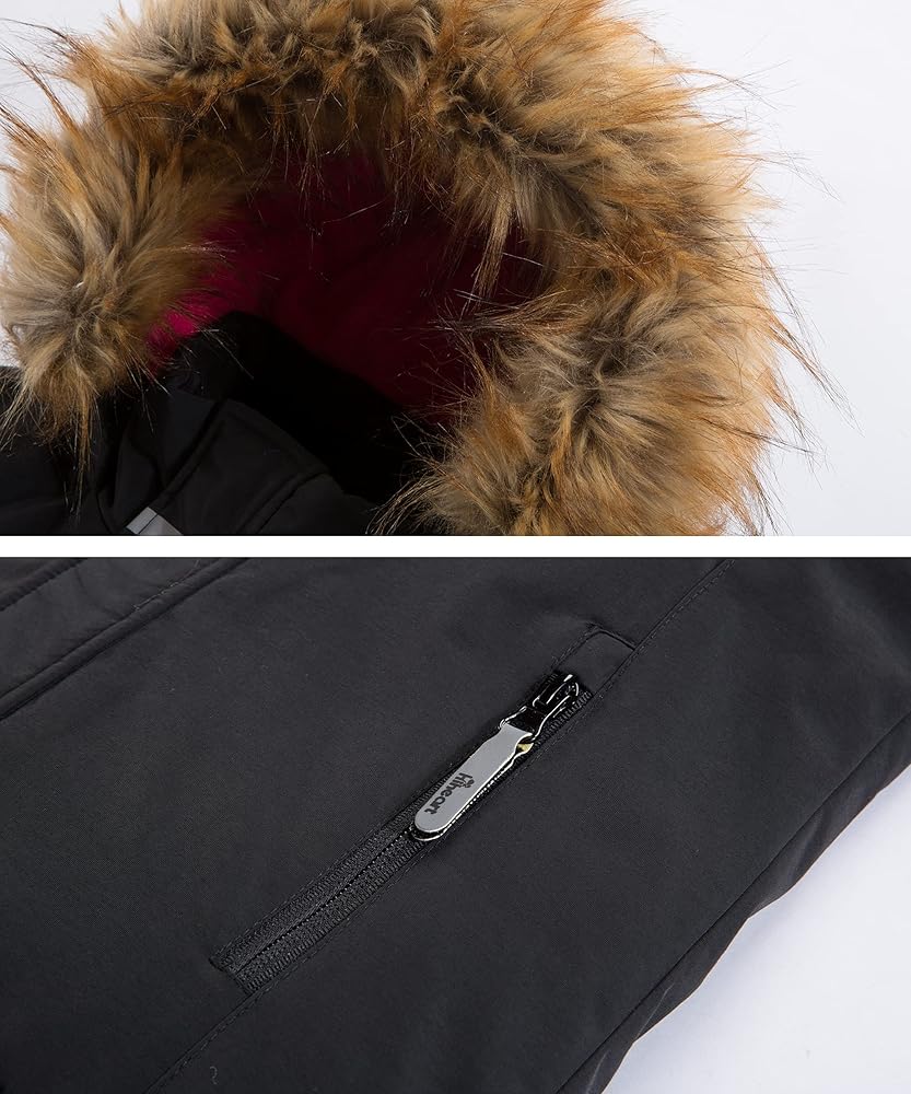 تضمن الحاشية المرنة وأساور الأكمام الفيلكرو تغطية آمنة، وتنورة مسحوق قابلة للتعديل تمنع الثلج من التسلل إلى الطبقات.