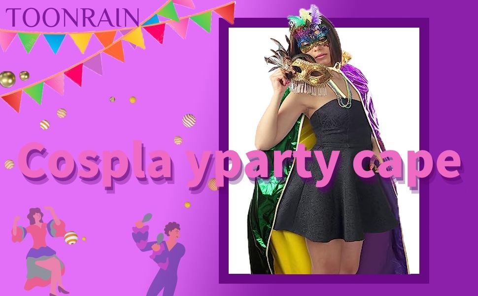 【اللون】يتميز رداء زي الكرنفال الخاص بنا بألوان ماردي جراس الكلاسيكية مثل الذهبي والأخضر والأرجواني، واللون ليس من السهل أن يبهت، والأصفر الساطع وعملية الربط الرائعة تجعلها مفعمة بالحيوية وجذابة، مما يلبي جو ماردي جراس ويرتديها. سوف تجعلك أكثر لافتة للنظر.