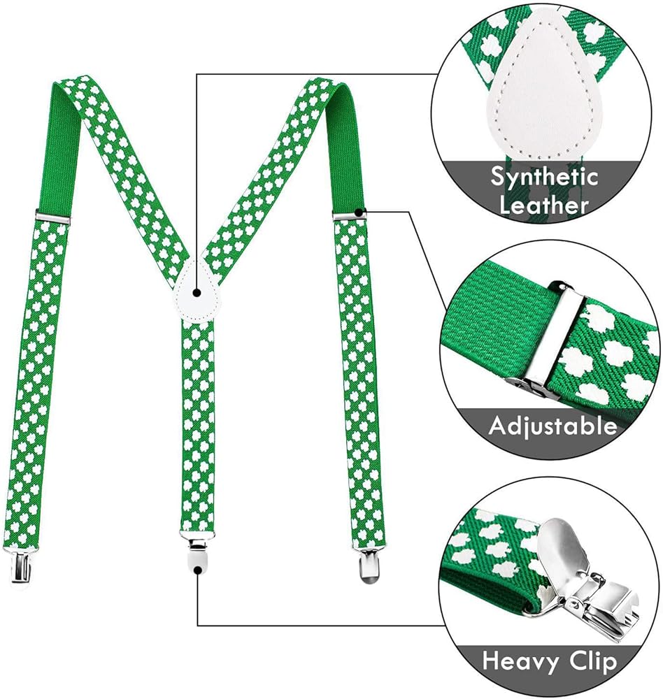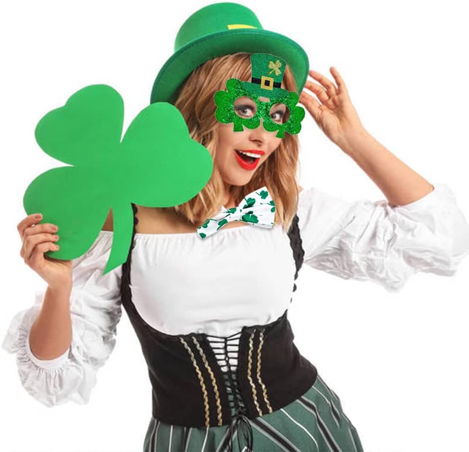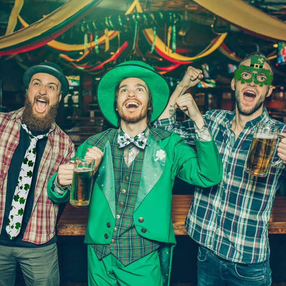 نظارات كلاسيكية بنمط نبات النفل الاحتفالي وربطات عنق وحمالات سهلة الارتداء لتتناسب مع ملابسك لتجعلك تبدو وكأنك رجل نبيل أو سيدة أنيقة.