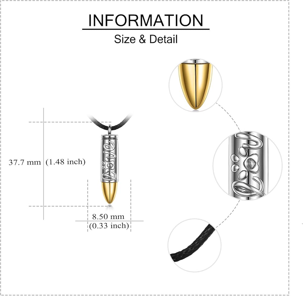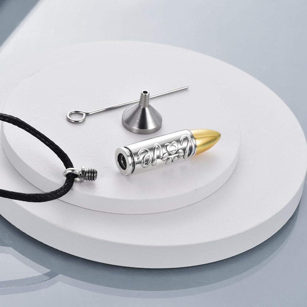 سهلة الاستخدام: سوف تحصل على مجموعة أدوات قمع صغيرة، افتح المسمار الآمن الموجود أعلى القلادة لوضع الرماد. نقترح أيضًا استخدام الغراء لإصلاح المسمار بعد تحميل الرماد.