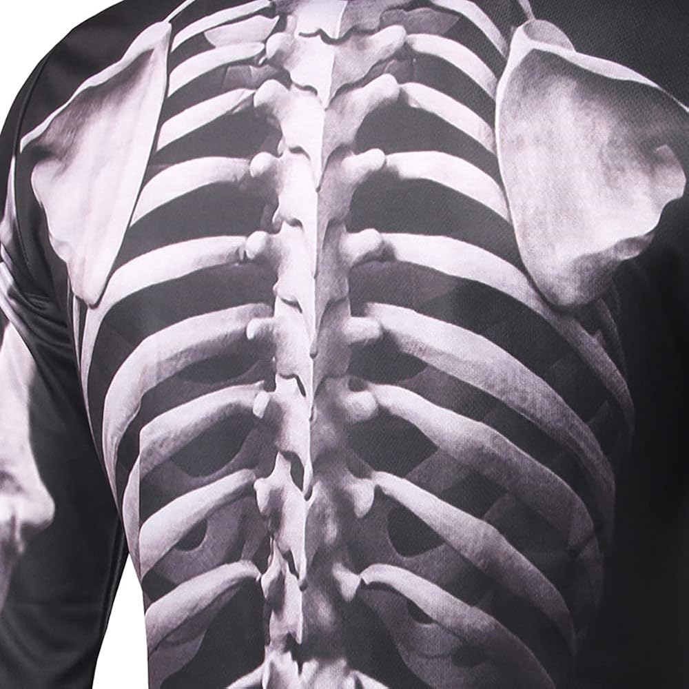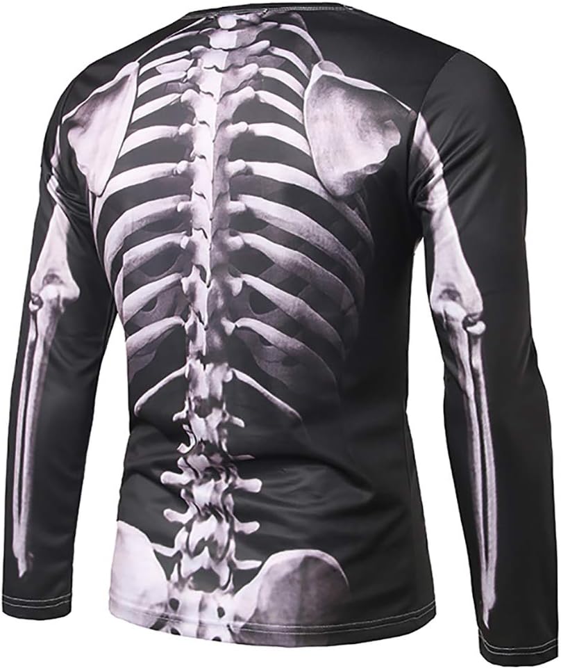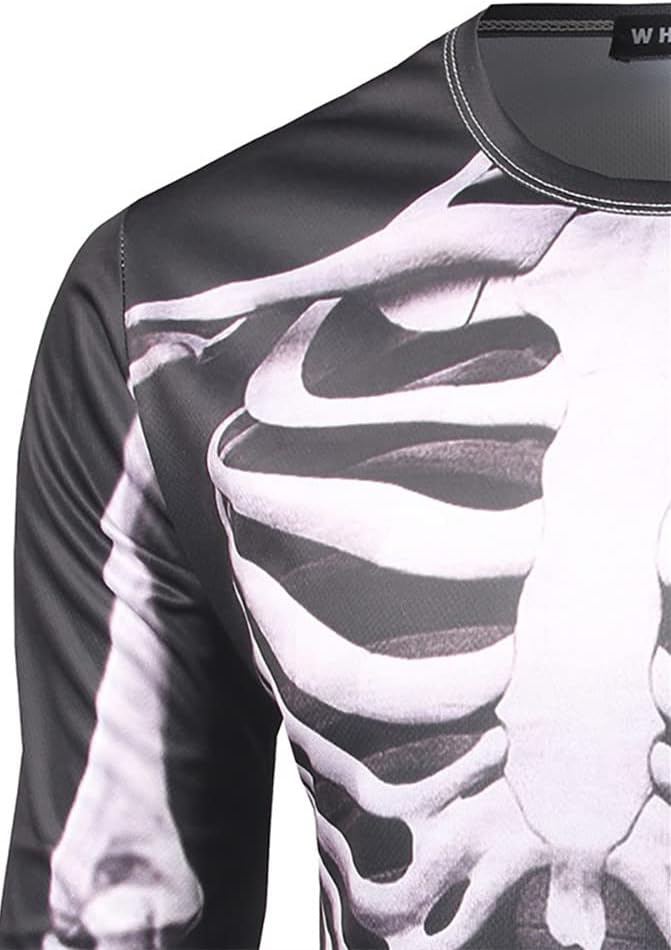- تصميم؛ صور مطبوعة بهيكل عظمي واقعي/ياقة دائرية/مقاس عادي/أكمام طويلة
