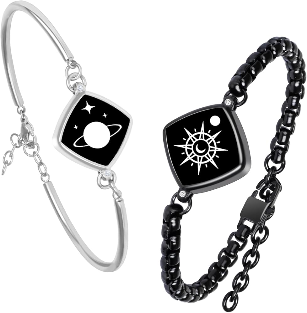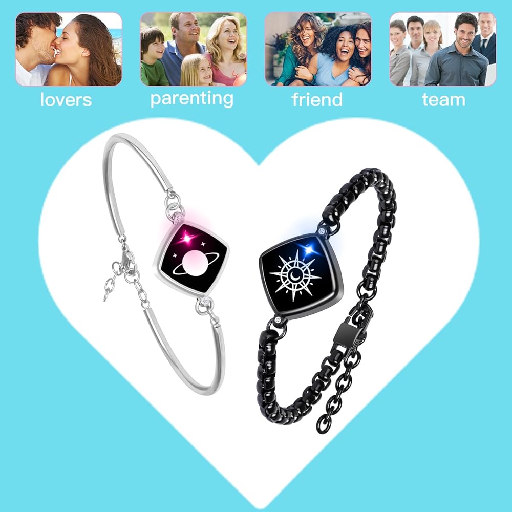 هدية رومانسية: تصميم عصري، متلألئ، هدية جيدة للعشاق والعائلة والأطفال والأزواج والأصدقاء. سوف تحصل على سوارين لمسافات طويلة. تم تصميم السوار الذي يعمل باللمس خصيصًا للزوجة والزوج والصديق والصديقة والصديقة المقربة والحبيبة. هدايا جميلة للذكرى السنوية والكريسماس والخطوبة وأعياد الميلاد وعيد الحب وعيد الشكر وعيد الأم والزفاف، مناسبة للارتداء اليومي وأي مناسبة.