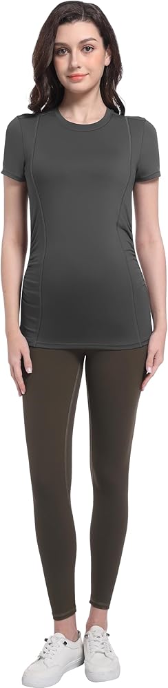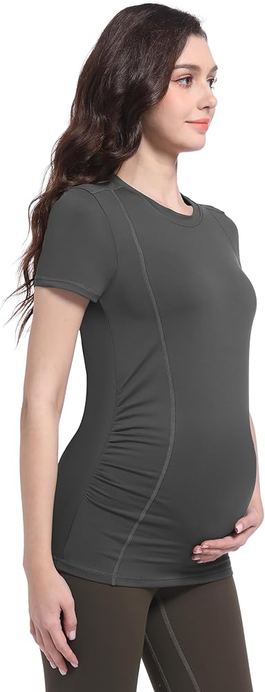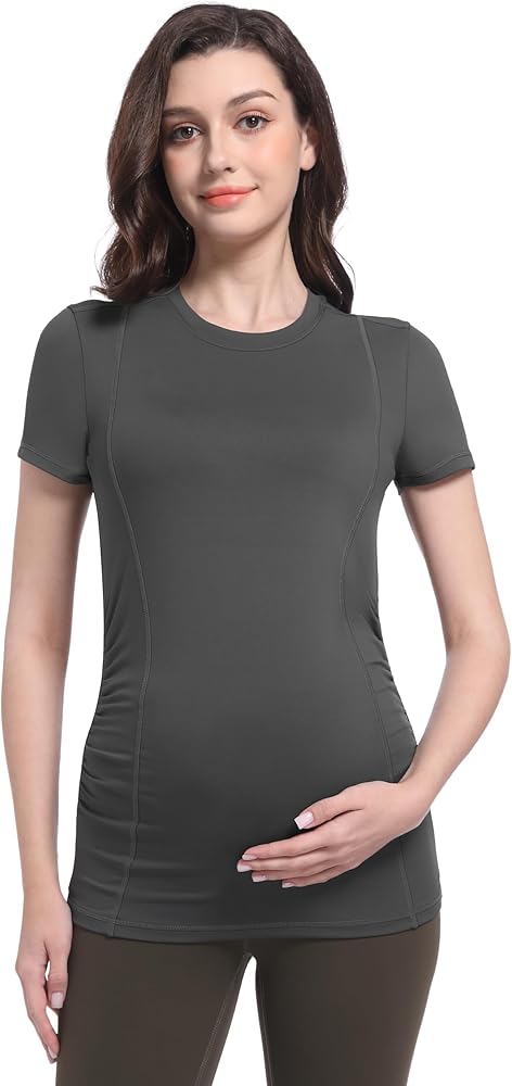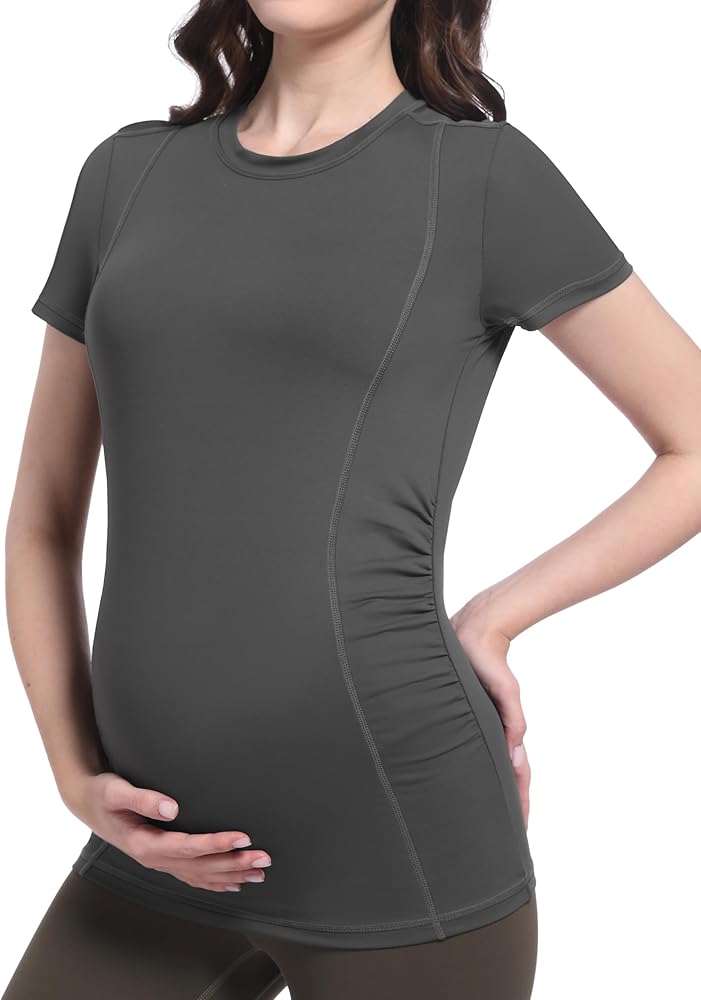 تصميم مكشكش جانبي - قمصان الحمل مصنوعة من نسيج عالي المرونة وتصميم مكشكش جانبي، يمكن أن توفر مساحة كافية للبطن المتنامي وتغطي بطنك طوال فترة الحمل، مثالية طوال فترة الحمل.